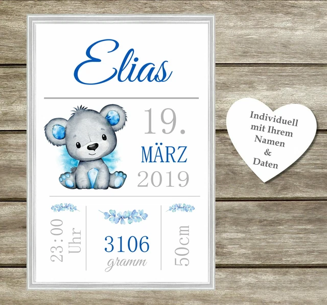 Suchst du ein besonderes Geschenk zur Geburt? Dieses personalisierte Baby-Poster mit süßen Tier-Motiven ist perfekt! Du kannst Name, Geburtsdatum, Gewicht, Größe, Uhrzeit und Geburtsort eintragen lassen. Erhältlich in DIN A5, A4 oder A3 - auch mit passendem Rahmen. Hochwertiger Druck auf Premium-Papier mit lebendigen Farben, die nicht verblassen. Eine wunderschöne Erinnerung an den Beginn des Lebens und dazu noch hübsche Deko fürs Kinderzimmer. Auch als Taufgeschenk oder für die Windeltorte super geeignet. Einfach individualisieren, bestellen und sich freuen!