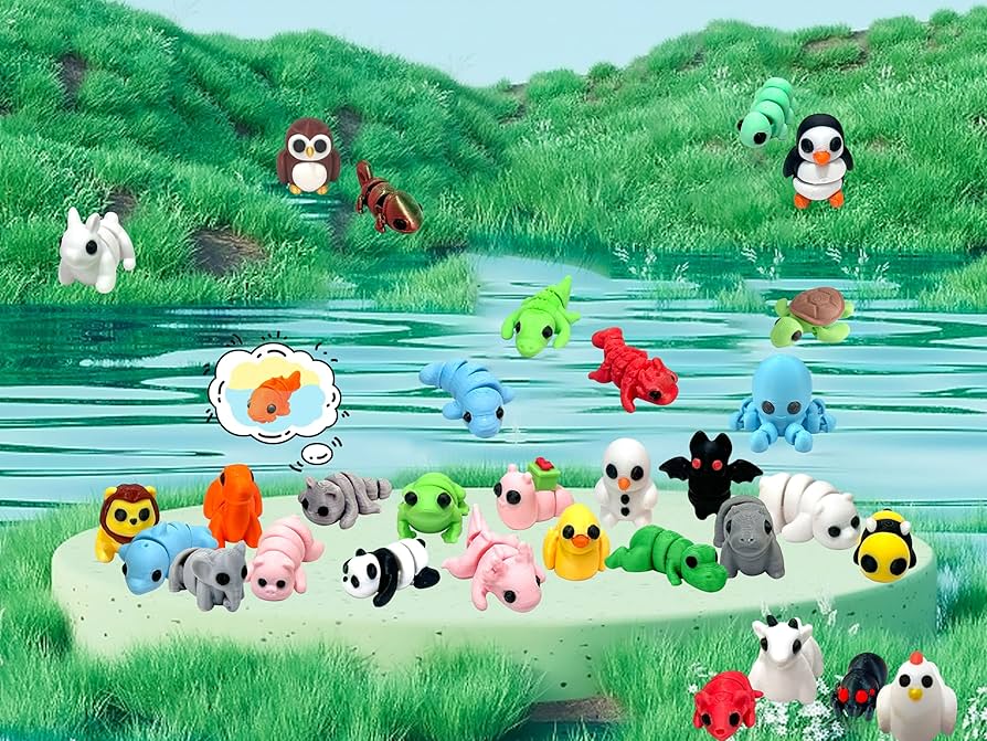 So süß! Dieses Set mit 32 verschiedenen Tierfiguren bringt Spaß und Entspannung in deinen Alltag. Jedes Tier ist mit beweglichen Gelenken ausgestattet und lässt sich in verschiedene Posen bringen - perfekt zum Spielen, Zappeln oder als niedliche Deko. Aus hochwertigem PLA-Kunststoff gefertigt, sind die Figuren robust und detailreich gestaltet. Ob Pinguin, Schildkröte, Biene oder Panda - die Vielfalt ist riesig! Super als Stressabbau im Büro, als Geschenk für Freunde oder als bunte Dekoration fürs Regal. Die handlichen Mini-Figuren passen in jede Tasche und sind immer dabei. Einfach in die Hand nehmen, die Gelenke bewegen und entspannen - für Groß und Klein ab 15 Jahren!