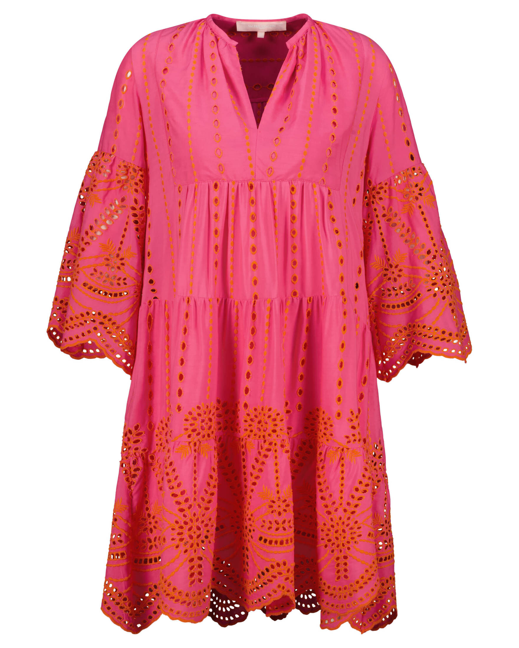 • Nolie Damen Kleid Mit Tiger-Print - Pink Mit Goldakzenten Größe L
