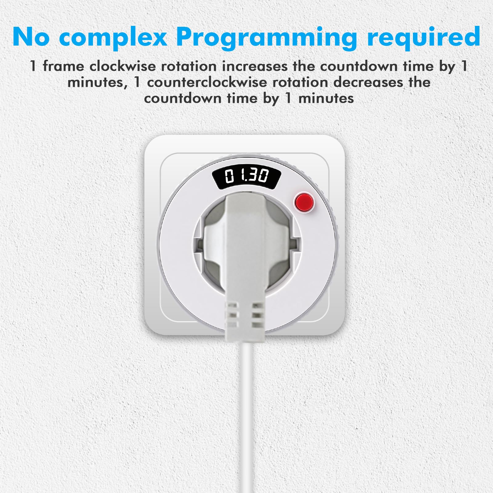 Automatisiere deine Geräte und spare Energie! Diese mechanische Zeitschaltuhr mit Countdown-Funktion ist super einfach zu bedienen und hilft dir, Stromkosten zu sparen. \\n\\nTechnische Daten: \\n- Spannung: 230V AC / 50Hz \\n- Max. Leistung: 3680W bei 16A \\n- Einstellbereich: 1 Minute bis 23:59 Stunden \\n- LED-Zeitanzeige \\n- Europäische Steckdose \\n\\nEinfache Bedienung ohne komplizierte Programmierung: \\n- Minutenmodus: Pro Raster 1 Minute mehr/weniger \\n- Stundenmodus: Pro Raster 1 Stunde mehr/weniger \\n- Kippschalter für einfache Bedienung \\n\\nPerfekt für: \\n- Küchengeräte und Kaffeemaschinen \\n- Beleuchtung und Weihnachtslichter \\n- Aquarien und Hydrokulturen \\n- Heizgeräte und Ventilatoren \\n\\nSicherheitsfeatures: \\n- Flammhemmendes PC-Gehäuse \\n- Hohe Temperaturbeständigkeit \\n- Nur 0,5W Eigenverbrauch \\n\\nNie wieder vergessen, Geräte auszuschalten! Mit diesem Timer sparst du nicht nur Energie, sondern gewinnst auch mehr Komfort im Alltag.