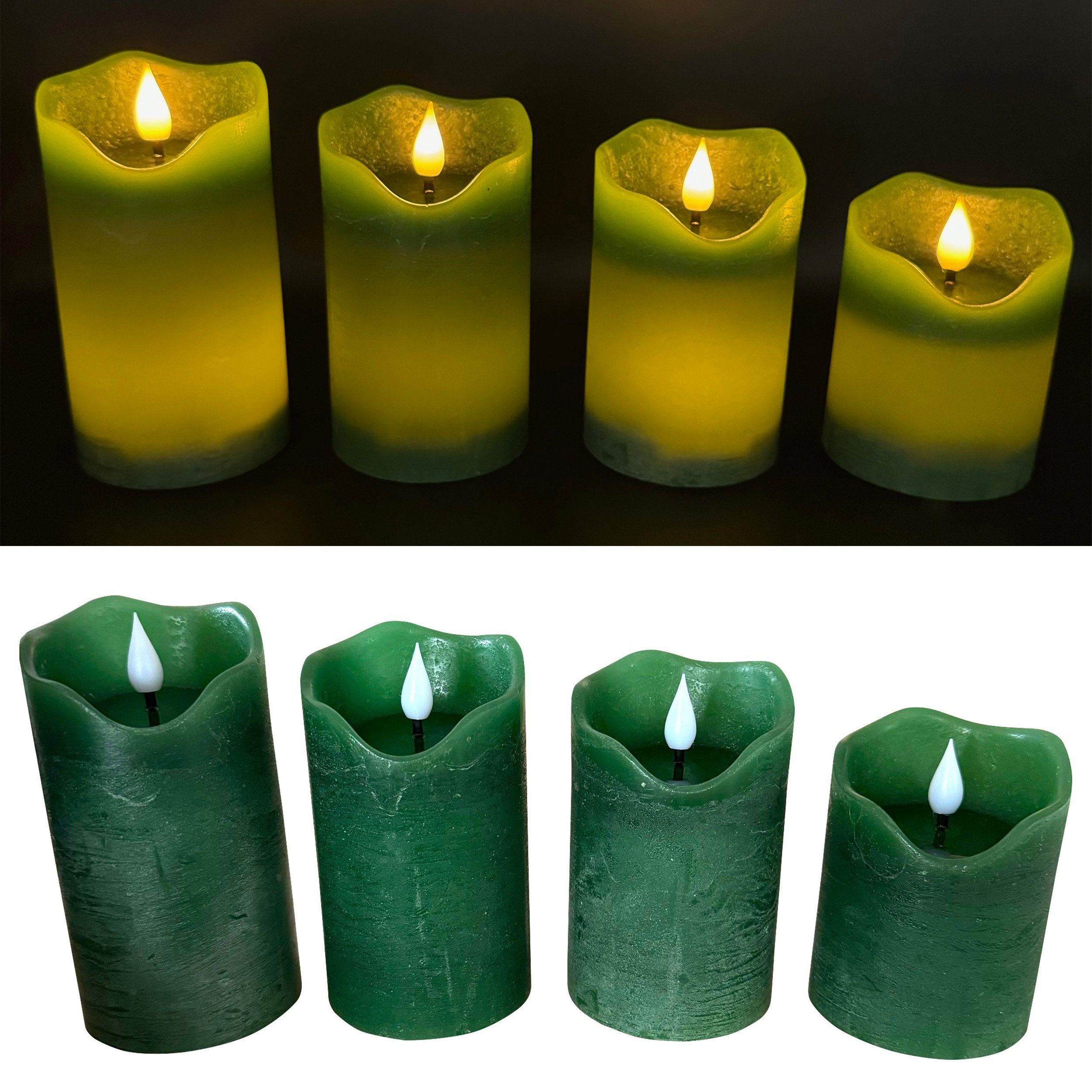 Diese LED-Kerze sieht aus wie echt - ist aber viel sicherer! Sie besteht aus echtem Wachs und hat einen täuschend echten Flackereffekt. Mit Timer-Funktion: Sie geht nach 6 Stunden automatisch aus und am nächsten Tag wieder an - perfekt für Dauerbeleuchtung! Läuft mit 2 AAA-Batterien (nicht im Lieferumfang) und hält satte 250 Stunden. Ohne offene Flamme - ideal für Familien mit Kindern oder Haustieren! Die dunkelgrüne Farbe passt super zu Weihnachtsdeko, aber auch zu jeder anderen Jahreszeit. Maße: 7x11,2 cm - nicht zu groß, nicht zu klein. Perfekt für den Kamin, Tisch, als Laternenkerze oder für die festliche Dekoration bei Hochzeiten und Geburtstagen. Macht einfach überall eine gemütliche Atmosphäre!