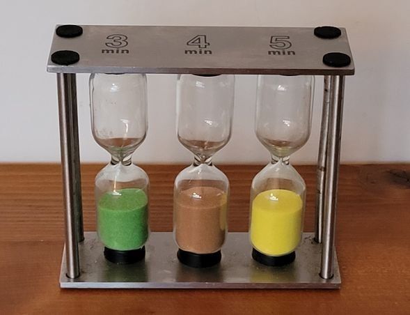 Der perfekte Tee - jedes Mal! Diese elegante Sanduhr hat drei Zeiten: 3 Minuten für zarten Grüntee, 5 Minuten für kräftigen Schwarztee und 7 Minuten für robuste Kräutertees. Aus strapazierfähigem Kunststoff im modernen Design (8x9x3cm). Keine Batterien nötig, kein Piepen - nur entspanntes Tee-Genießen. Klare Beschriftung für einfache Bedienung. Passt perfekt in jede Küche oder Tee-Ecke. Ideal für Tee-Liebhaber, die Wert auf die richtige Ziehzeit legen. Ein wunderbares Geschenk für Tee-Fans oder für dich selbst. Mach deine Tee-Zeremonie zu einem Moment der Ruhe und Präzision. Einfach umdrehen und den perfekten Tee genießen!