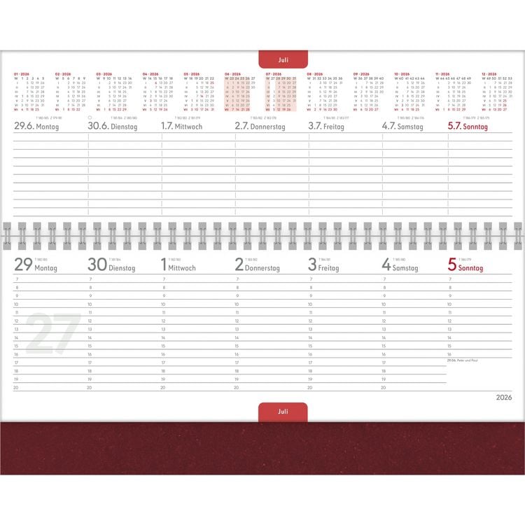 Planst du schon für 2026? Dieser Nature Line Forest Tischkalender ist nicht nur super praktisch, sondern auch noch umweltfreundlich! Mit seinen 29,7 x 13,5 cm im Querformat passt er perfekt auf jeden Schreibtisch. Das Besondere: Er ist komplett umweltfreundlich produziert - FSC-zertifiziertes Papier, Farben auf Sojabasis und umweltfreundliches Strukturpapier als Einband. Jede Woche hat zwei Seiten: oben Platz für Notizen mit Jahresübersicht, unten ne Zeiteinteilung von 8-21 Uhr für deine Termine. Das Kalendarium ist 4-sprachig (DE/FR/IT/GB) und zeigt Feiertage von Deutschland, Österreich, Schweiz, Frankreich und Italien. Mit Ringbindung klappen die Seiten super um und bleiben auch bei häufigem Gebrauch stabil. Monatsregister, Tageszähler und Jahresübersichten für 2026/2027 helfen dir, den Überblick zu behalten. Sieht nicht nur gut aus, sondern ist auch noch nachhaltig - besser geht's kaum!