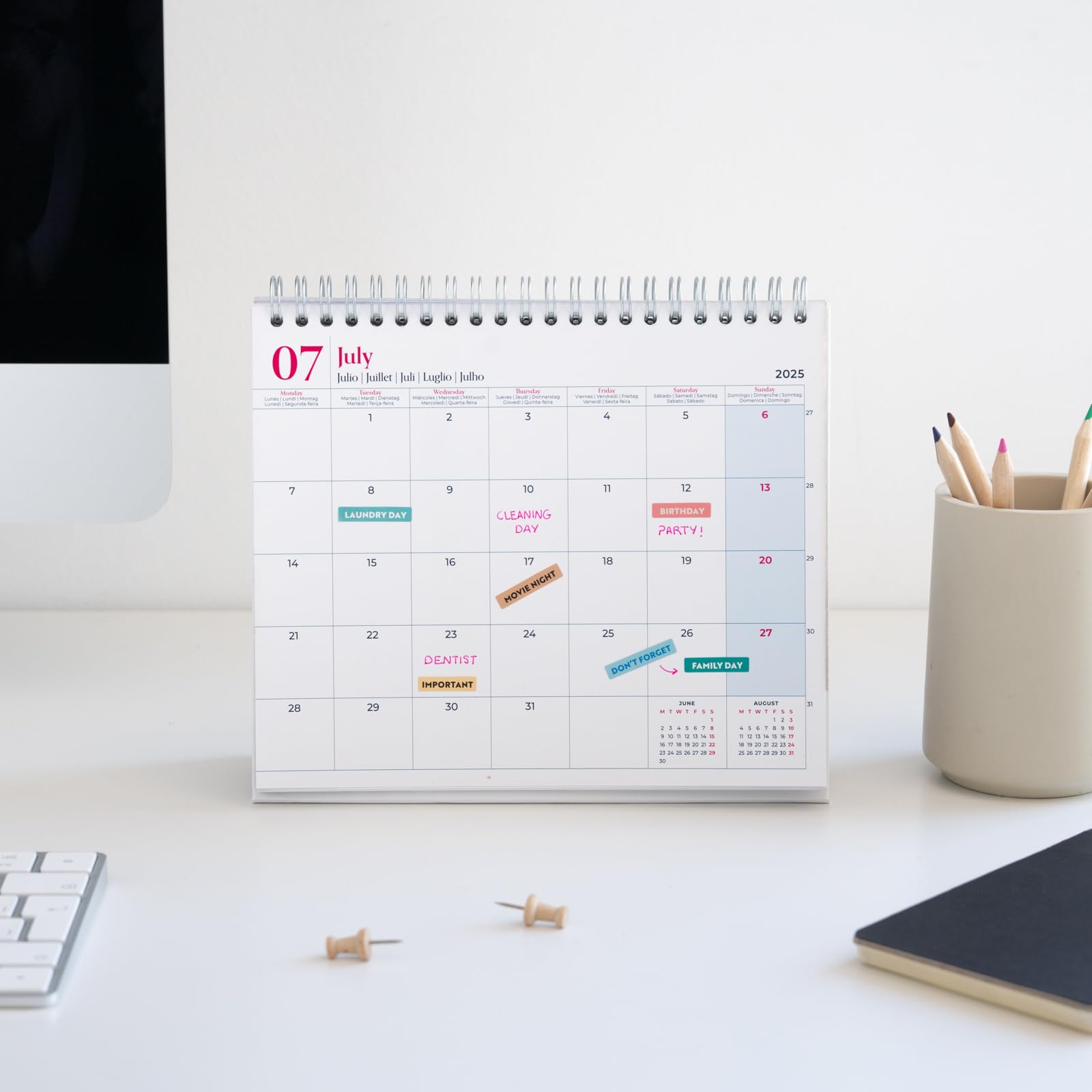 Hol dir ein Stück Paris auf deinen Schreibtisch! Der Grupo Erik Tischkalender 2025 zeigt dir monatlich neue, traumhafte Paris-Motive. Mit 20x17cm perfekt für deinen Schreibtisch, Nachttisch oder die Küche. Sechs Sprachen verfügbar - Deutsch, Englisch, Französisch und mehr. Die Ringbindung macht das Blättern super einfach. Perfekt um Termine, Geburtstage und wichtige Dates im Blick zu behalten. Von Januar bis Dezember 2025 immer den Überblick behalten. Hochwertiges Papier mit FSC-Zertifikat - gut für die Umwelt und gut für dich. Ein hübsches Geschenk für Weihnachten oder den Schulanfang - praktisch und dekorativ zugleich!