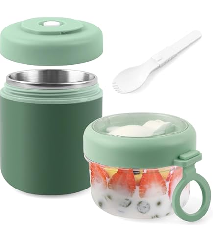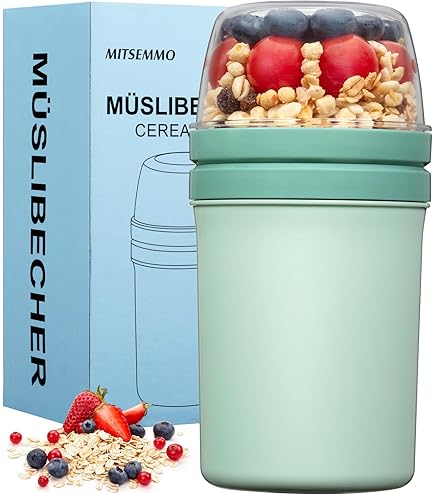 Müsli to go war noch nie so einfach! Dieser geniale Becher hat zwei getrennte Fächer: In die obere Schicht (330 ml) kommt dein Müsli, Nüsse oder Obst, in die untere (530 ml) Joghurt, Milch oder Smoothie. Die silikondichte Versiegelung ist absolut auslaufsicher - du kannst den Becher getrost in deiner Tasche transportieren. Aus BPA-freiem, lebensmittelechtem Material ist er völlig unbedenklich. Perfekt fürs Büro, die Schule, Sport oder Picknicks. Das moderne Design sieht nicht nur gut aus, sondern ist auch super praktisch. Einfach den Deckel abnehmen, mischen und genießen! Endlich kein matschiges Müsli mehr - alles bleibt frisch und knusprig, bis du es essen willst. Mit 530 ml + 330 ml Fassungsvermögen ist für jeden Hunger die richtige Portion dabei. Egal ob für dich selbst oder deine Kinder - dieser Becher macht Frühstück unterwegs zum puren Vergnügen!