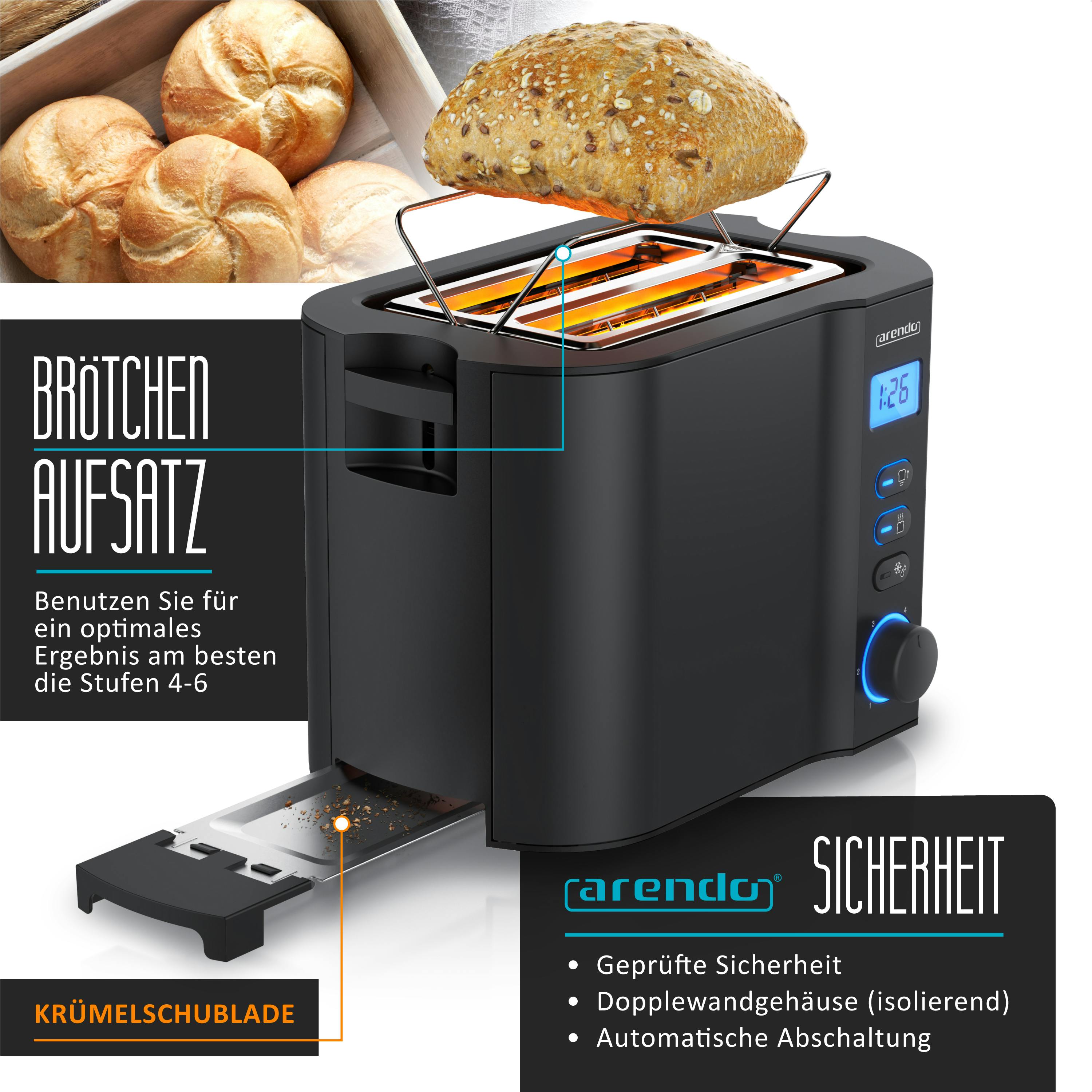 • EMERIO Toaster Edelstahl Mit Display - 2 Schlitze & Brötchenaufsatz 800W