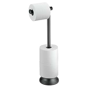 Praktische Lösung für jedes Badezimmer! Dieser mDesign Toilettenpapierhalter wird einfach über den Spülkasten gehängt - komplett ohne Bohren! Aus robustem Metall in mattschwarz, hält ewig und sieht dabei richtig edel aus. Platz für 2 Rollen Klopapier, immer griffbereit und hygienisch über dem Boden. Mit Maßen von 12,7x5,7x27,9cm passt er in jedes WC, auch in kleine Gästetoiletten. Das offene Design macht den Wechsel der Rollen super einfach. Endlich keine herumliegenden Klopapierpackungen mehr! Einfach aufhängen und sich über die aufgeräumte Badewanne freuen.