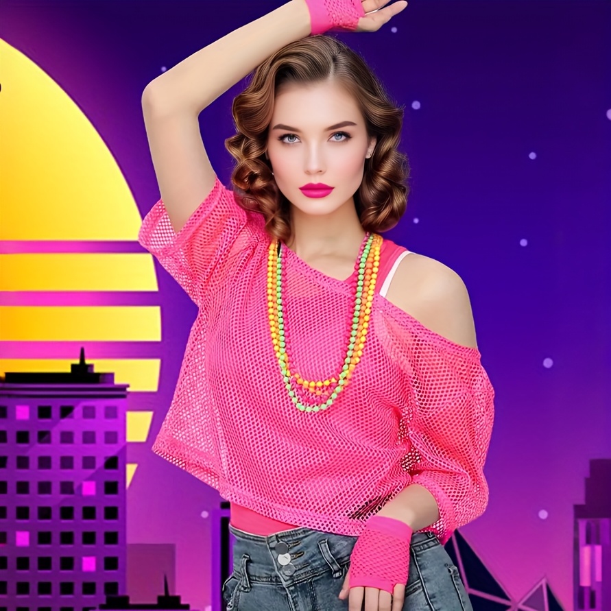 Ab in die 80er! Dieses coole Netz-Top im Retro-Style ist der absolute Party-Hit. Aus weichem Polyester-Mix mit lockerer Passform und elegantem Ausschnitt. Perfekt für Festivals, Mottopartys oder den nächsten Club-Besuch. Einfach in der Maschine waschbar und trocknet schnell. Mit diesem auffälligen Top wirst du garantiert zum Blickfang auf jeder Tanzfläche. Hol dir den Vintage-Look und rocke die Party!
