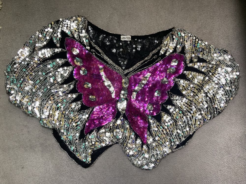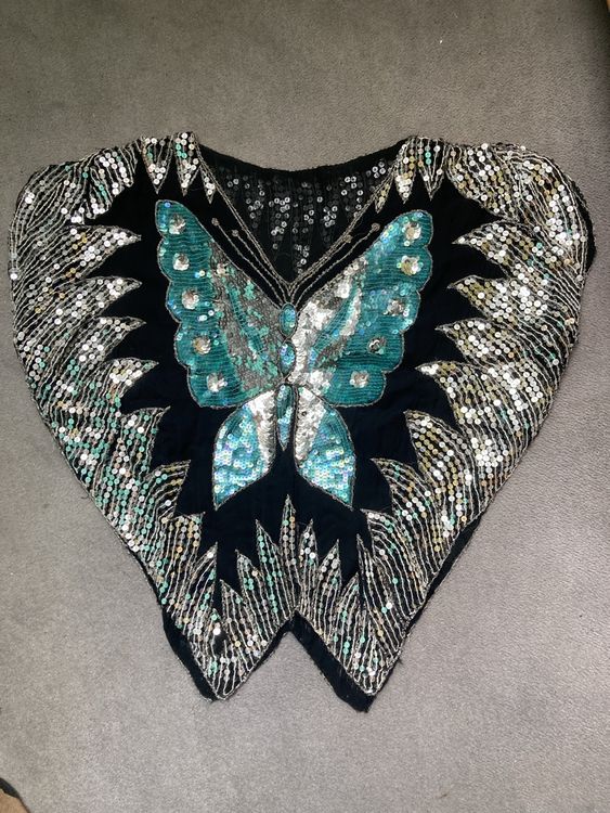 Absolute Hingucker für jede Party! Dieses Pailletten Crop Top mit wunderschönem 3D-Schmetterlings-Motiv und funkelnden Perlen ist perfekt für Festivals, Clubs und besondere Anlässe. In Free Size (37cm Länge, 33cm Breite) passend für Körbchengrößen 81-80 A/B. Aus Polyester mit Spandex und glitzernden Pailletten - atmungsaktiv und super bequem. Die verstellbaren Spaghettiträger und V-Ausschnitt sorgen für perfekten Sitz. Kann als Schmetterling-Top, Meerjungfrauen-Top, Rave-Top oder Bauchtanz-Kostüm getragen werden. Einfach kombinierbar mit Meerjungfrauen-Rock, PU-Rock oder Jeans. Wichtig: Nur Handwäsche, nicht in die Maschine! Siehst du umwerfend aus bei Karneval, Musikfestivals oder Latin-Tanz - einfach glamourös!