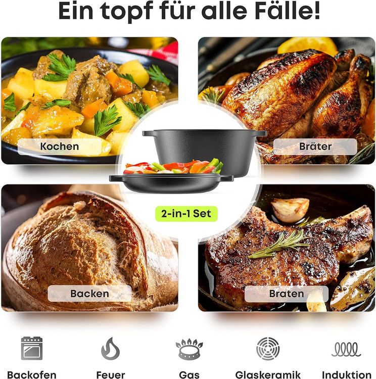 Einfach genial für Outdoor und Küche! Dieser Gusseisen-Topf mit Deckel ist dein vielseitiger Helfer für leckere Gerichte. Maße: 27x22x10 cm - perfekt für Süßkartoffeln, Hühnchen, Gemüse oder was du sonst noch grillen willst. Gusseisen sorgt für gleichmäßige Hitzeverteilung und perfekte Garergebnisse. Der Deckel hält Feuchtigkeit und Aromen gefangen - einfach köstlich! Ob auf dem Grill, im Ofen oder über dem Campingfeuer - dieser Topf macht alles mit. Die antihaftbeschichtete Oberfläche ist super leicht zu reinigen. Mit praktischem Griff für sicheres Handling. Für alle die gerne draußen kochen oder in der Küche experimentieren. Einfach befüllen, zudecken und genießen!