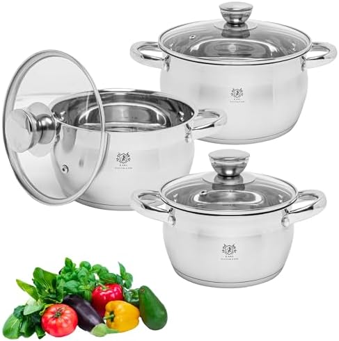 Kochbegeisterte aufgepasst! Dieses Karl Hausmann Topfset ist ein echter Game-Changer in der Küche. Mit 3 Töpfen in verschiedenen Größen - 0,9 Liter, 1,7 Liter und 2,8 Liter - bist du für jedes Rezept bestens ausgestattet. Aus hochwertigem Edelstahl 18/0 gefertigt - rostfrei, langlebig und super pflegeleicht. Der Clou: Die Töpfe haben einen 4-schichtigen Boden für perfekte Wärmeverteilung und funktionieren auf ALLEN Herdarten - auch Induktion! Die ergonomischen Griffe liegen super in der Hand und die Glasdeckel mit Belüftungsschlitzen lassen dich den Kochfortschritt beobachten. Besonders praktisch: Die Messskala im Inneren erleichtert das Abmessen von Zutaten. Ob für Suppen, Saucen oder Hauptgerichte - mit diesem Set wird Kochen zum puren Vergnügen. Die silberne Farbe sieht edel aus und passt in jede Küche. Einfach in der Spülmaschine reinigen - kein lästiges Schrubben mehr. Perfekt für Singles, Paare oder Familien - für jeden Tag und besondere Anlässe. Investiere in Qualität, die lange hält und deine Kochkünste optimal unterstützt. Ein Topfset, das wirklich alles kann!