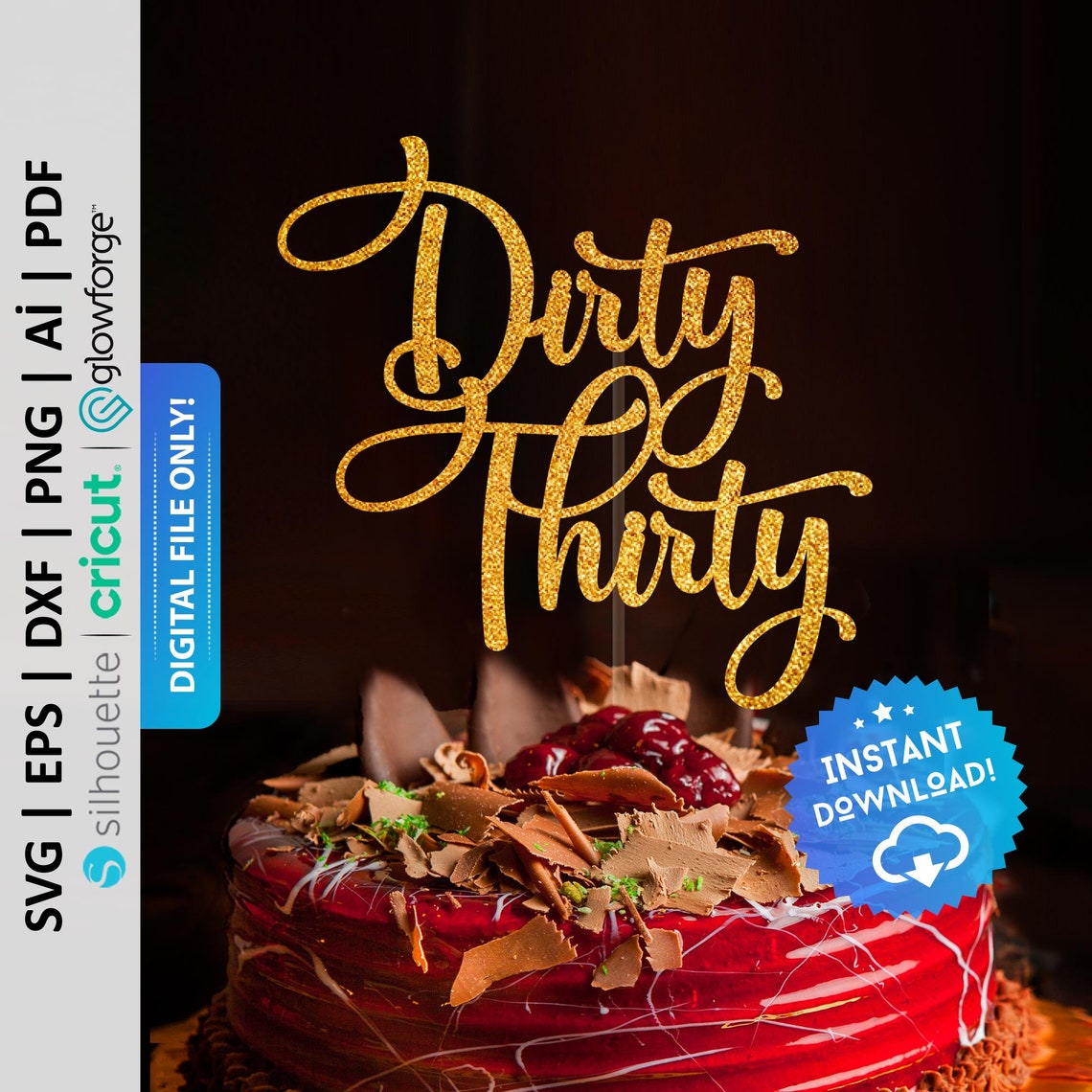 • Dirty Thirty Cake Topper - 30. Geburtstag Kuchendekoration - Schwarzer Glitzer Aufsatz