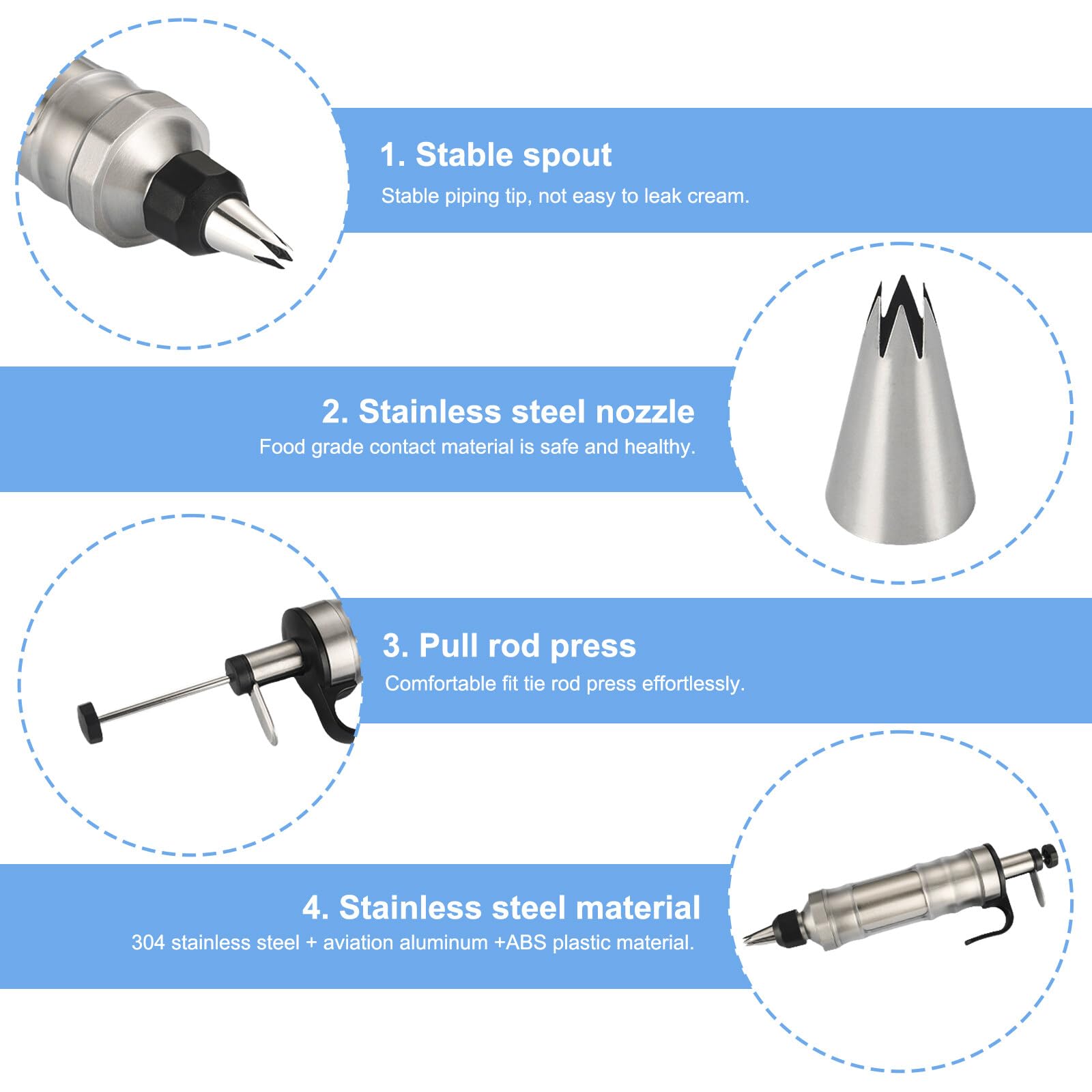 Wow, mit diesem 34-teiligen Spritzset wirst du zum echten Torten-Profi! Aus Edelstahl und Kunststoff - das ist Qualität, die lange hält. Mit 20 verschiedenen Tüllen kannst du alles machen: Rosetten, Blumen, Sterne, was dir eben einfällt. Der Einhand-Kolben ist super praktisch - du hast eine Hand frei und kannst trotzdem präzise arbeiten. Ob für Geburtstagstorten, Cupcakes, Cookies oder Gebäck - damit machst du alles hübsch. Nach dem Benutzen einfach alle Teile auseinandernehmen und mit der beiliegenden Bürste reinigen. Spülmaschinengeeignet natürlich! Das Set ist auch ein super Geschenk für Hobby-Bäcker oder sogar Profis. Egal ob Anfänger oder erfahrener Bäcker - mit diesem Set gelingt dir jede Dekoration!