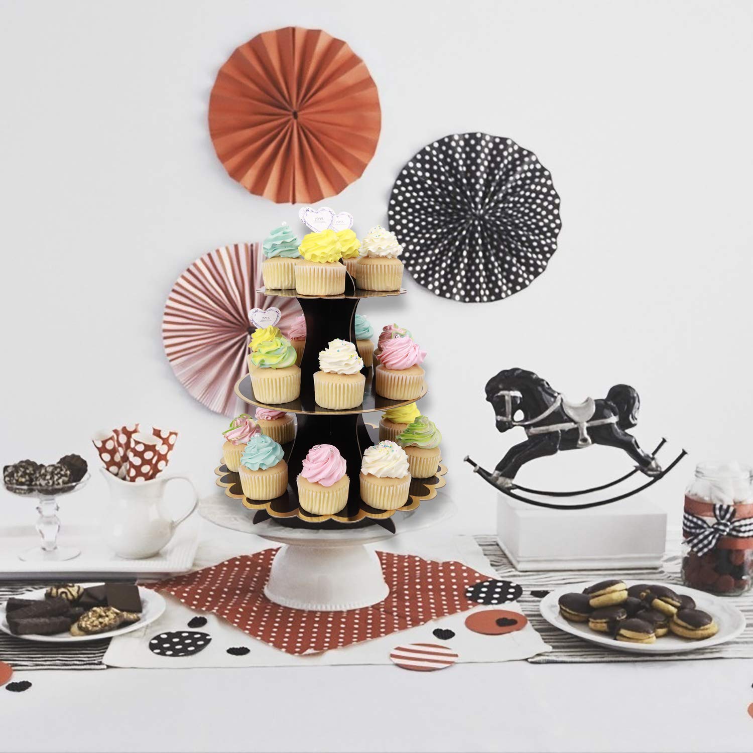 Perfekte Präsentation für deine süßen Köstlichkeiten! Diese pinken 3-etagigen Tortenständer verwandeln jede Feier in ein optisches Highlight. Aus stabilem Karton gefertigt, sind sie leicht aber dennoch robust genug für Cupcakes, Muffins, Gebäck und kleine Torten. Mit den Durchmessern 32cm, 24cm und 8cm bietet jede Etage Platz für andere Leckereien. Einfach zusammenzustecken - keine Kleber oder Werkzeuge nötig! Nach der Party platzsparend verstauen und beim nächsten Fest wieder verwenden. Ideal für Geburtstage, Hochzeiten, Babypartys, Weihnachten oder einfach für die Kaffeetafel. Im Set sind 2 komplette Ständer enthalten - genug für große Feiern! Auch super für Bäckereien und Cafés. Mach deine Kreationen zum absoluten Hingucker - deine Gäste werden begeistert sein!