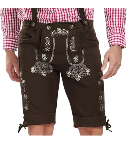 Prost! Mit dieser authentischen Lederhose von Bastwahl bist du perfekt fürs Oktoberfest gerüstet. Die traditionelle kurze Lederhose wird in reiner Handarbeit gefertigt und überzeugt durch erstklassige Qualität. \n\nDie aufwändigen Stickereien und das Vintage-Design machen jede Hose zu einem Unikat. Aber nicht nur optisch überzeugt sie - der lockere Schnitt an Beinen und Taille sorgt für maximalen Komfort, selbst nach vielen Stunden beim Bieranstich.\n\nEgal ob auf dem Münchner Oktoberfest, beim Dorffest oder der Grillparty im Garten - in dieser Lederhose fällst du garantiert positiv auf. Sie wird nach traditionellem europäischem Schnitt gefertigt, also unbedingt die Größentabelle checken vor dem Kauf!\n\nDie Hose ist nicht nur für Bierfeste geeignet, sondern auch für Familienfeiern, Urlaub oder gemütliche Abende mit Freunden. Ein zeitloses Stück Tracht, das viele Jahre hält und bei jedem Anlass für bayrische Gemütlichkeit sorgt. Auf geht's zur Wiesn!