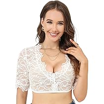 Die perfekte Dirndlbluse fürs Oktoberfest und alle Trachten-Events! Dieses wunderschöne weiße Blusen-Highlight überzeugt mit zarten Spitzendetails und floralen Elementen. Der dehnbare Stoff liegt angenehm weich auf der Haut und garantiert dir maximalen Tragekomfort den ganzen Tag (und die ganze Nacht!) lang. Besonders praktisch: Der Bund mit Gummizug passt sich ideal deiner Figur an. Das pearl-artige Knopfdesign am Kragen und das chinesische Glücksmünzen-Muster verleihen der Bluse eine extra Portion Eleganz. Von Größ 34 bis 46 ist für jede Dame die passende Größe dabei. Kombinierbar mit fast jedem Dirndl - ob traditionell, sportlich oder richtig sexy, diese Bluse macht immer eine gute Figur! Einfach per Hand waschen (bitte nicht bleichen!) und schon ist sie ready für den nächsten Einsatz. Ob Wiesn, Karneval oder Mottoparty - mit dieser Bluse bist du der absolute Hingucker!
