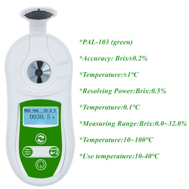 Dieses digitale Refraktometer ist ein kleines Wunder für alle, die Zuckergehalte messen müssen! Super einfach zu bedienen - einfach ein paar Tropfen der Probe drauf, und schon zeigt es dir den Brix-Wert an. Mit automatischer Temperaturkompensation für genaue Ergebnisse. Aus hochwertigem ABS gefertigt, ist es robust, leicht und passt in jede Tasche. Perfekt für Brennereien, Winzer, Lebensmittelindustrie oder Hobby-Brauer. Der Akku hält lange und schaltet sich nach 2 Minuten Inaktivität selbst ab. Einfach ein praktisches Tool für professionelle und präzise Messungen!