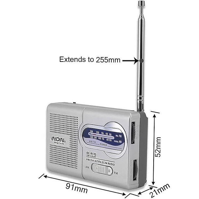 Musik und Nachrichten immer dabei - dieses süße Mini-Radio passt in jede Jackentasche! Der BC-R119 ist zwar klein, aber oho: Mit AM und FM Empfang hast du Zugang zu allen wichtigen Sendern. Die ausziehbare Antenne sorgt für klaren Empfang, egal ob du zu Hause, im Garten oder unterwegs bist. Aus robustem ABS-Kunststoff gefertigt, übersteht das Radio auch mal einen kleinen Sturz. Mit seinen Maßen von nur 9x5,7x2,2 cm ist es wirklich winzig klein und wiegt kaum was - perfekt für unterwegs! Betrieb mit 2 AA-Batterien (nicht im Lieferumfang), also einfach Batterien rein und loshören. Ob morgens beim Frühstück, nachmittags im Park oder abends beim Einschlafen - dieses Radio ist dein treuer Begleiter. Super praktisch für Camping, Reisen oder einfach für zu Hause. Der integrierte Lautsprecher liefert einen erstaunlich guten Sound für die kleine Größe. Einfach einschalten, Sender suchen und entspannen! Dieses Radio beweist: Gute Dinge kommen in kleinen Paketen.