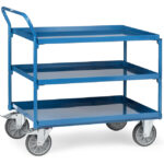Mann, ist der praktisch! Dieser Etagenwagen mit stolzen 250kg Traglast ist ein echter Arbeitserleichterer in Werkstatt, Lager oder Küche. Mit drei Etagen hast du jede Menge Stauraum für Werkzeuge, Teile oder was auch immer du transportieren musst. Die Maße von 1060 x 700 x 1530 mm sind genau richtig - nicht zu groß, nicht zu klein. Die MDF-Platten sind stabil und halten was aus. Die gummierten Räder mit 160mm Durchmesser rollen super leicht und sind spurlos - ideal für empfindliche Böden! Zwei Bremsrollen sorgen für sicheren Stand, wenn du den Wagen mal irgendwo abstellen willst. Die RAL 5010 Enzianblau Farbe sieht nicht nur gut aus, sondern ist auch praktisch - Flecken siehst du nicht sofort. Die variable Höheneinstellung der Etagen gibt dir noch mehr Flexibilität. Einfach zusammenschrauben und schon geht's los! Ob in der Werkstatt, im Großhandel oder in der Produktion - dieser Wagen macht einfach jeden Job leichter!