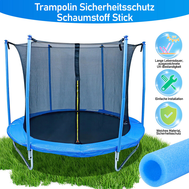 Für mehr Sicherheit am Trampolin - dieses 6-teilige Schutzpolster-Set ist genau das Richtige! Die robusten Polster aus PE-Material schützen vor Stößen und Verletzungen und sind für Kinder und Erwachsene gleichermaßen geeignet. Mit rutschfester Technologie und rissfester Konstruktion - also halten die Dinger auch bei intensiver Nutzung. Und das Beste: Montage ganz ohne Werkzeug! Einfach zusammenstecken und schon ist das Trampolin sicherer. Wasserdicht und für alle Wetterlagen geeignet. Passend für die meisten Trampolin-Modelle - einfach die Maße checken und loslegen. So macht Springen noch mehr Spaß!