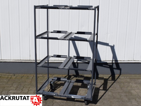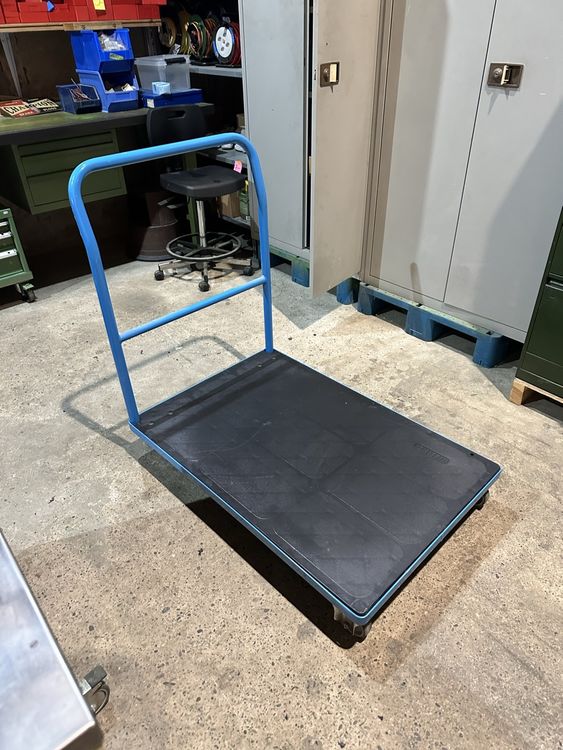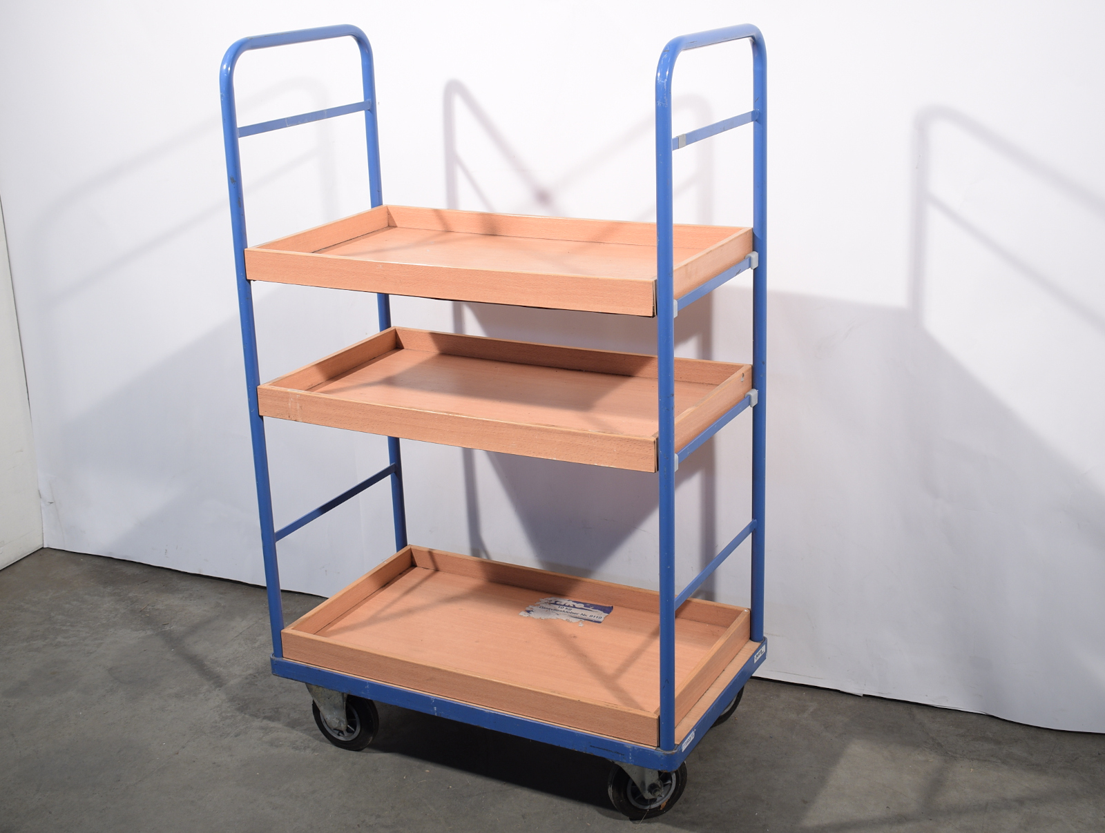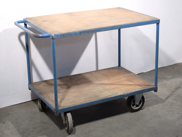 Dieser Abrollwerk Transportwagen ist der beste Helfer in Werkstatt und Lager! Mit zwei Etagen und 400 kg Tragkraft bewegt er mühelos schwere Lasten.\n\nMaße 95x50x97 cm (HxBxT) - passt perfekt durch Türen und in enge Gänge. Zwei stabile Ablageflächen bieten Platz für Werkzeuge, Kisten, Pakete oder Materialien.\n\nMit 2 Lenkrollen (teilweise mit Bremse) und 2 Bockrollen ist er super wendig und kontrollierbar. Selbst voll beladen lässt er sich leicht schieben und manövrieren.\n\nDie robuste Stahlkonstruktion ist pulverbeschichtet in Lichtblau - kratzfest, rostgeschützt und für den täglichen harten Einsatz gemacht.\n\nIdeal für: Lager, Versand, Produktion, Werkstätten, Büros oder auch zu Hause in der Garage. Spart Zeit und Wege beim Transport von schweren Gegenständen.\n\nEin echter Allrounder, der sich schnell bezahlt macht. Ob als Rollwagen, Materialwagen oder Transporthilfe - mit diesem Wagen meisterst du jeden Transport!