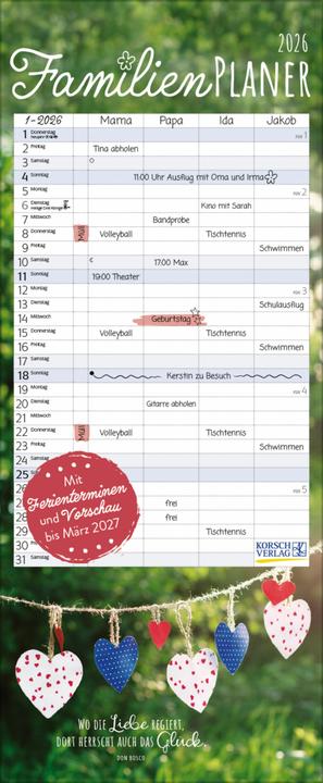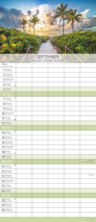 Perfekte Organisation für die ganze Familie! Der Familienplaner 2026 mit wunderschönen Traumziel-Motiven. Maße 19,5x45cm - gut sichtbar aber nicht zu groß. 5 Spalten - für jedes Familienmitglied eigene Einträge. Mit Ringbindung - lässt sich easy umblättern. Gedruckt auf FSC-zertifiziertem Papier - nachhaltig und umweltfreundlich. 4-sprachiges Kalendarium (DE/FR/IT/GB) - praktisch für internationale Familien. Feiertage für Deutschland, Österreich, Schweiz - immer im Blick. Hergestellt in Deutschland - Qualität die überzeugt. Wunderschöne Fotos von Traumstränden - machen Lust auf Urlaub. Macht Terminplanung zum Vergnügen - nie wieder etwas vergessen!
