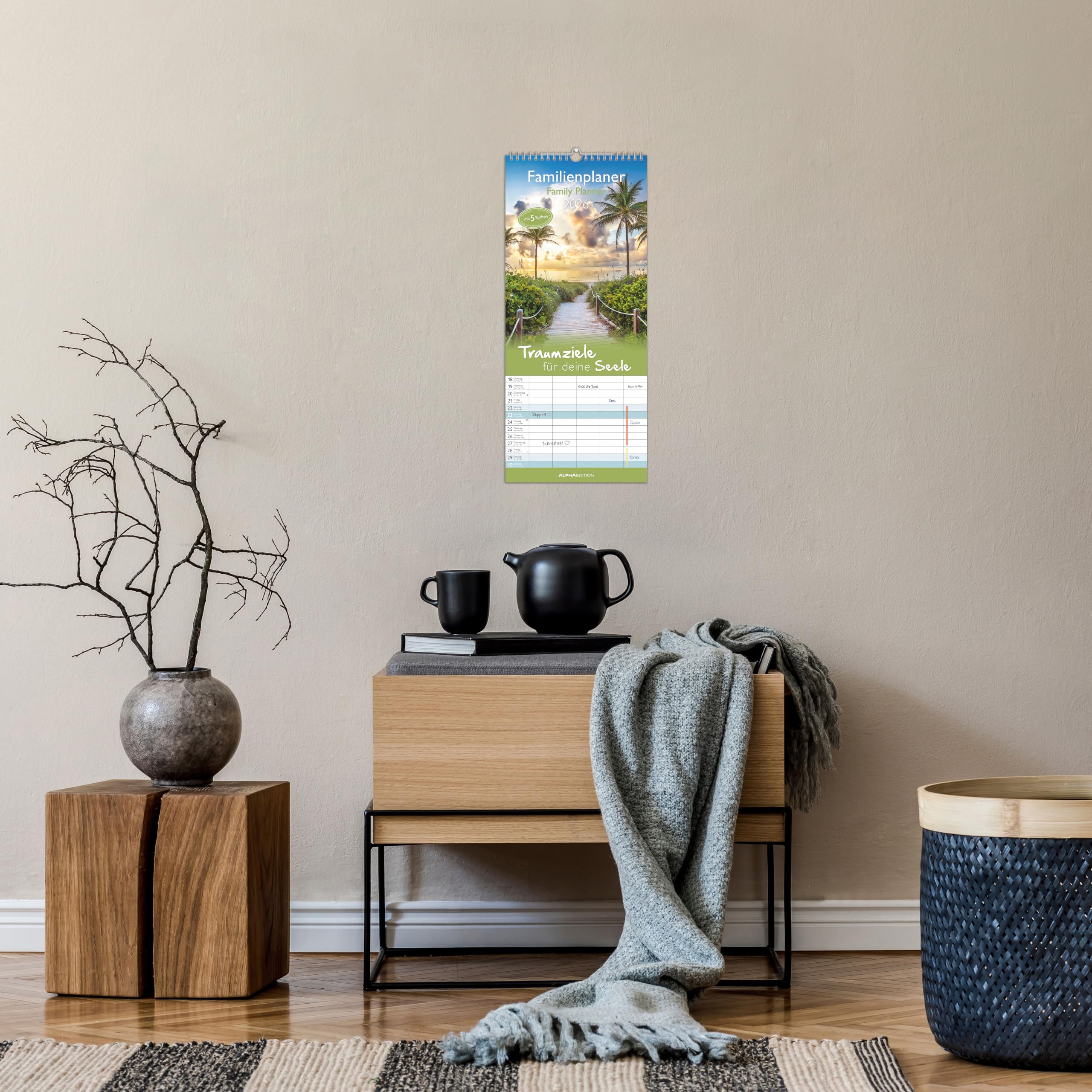 Familienplaner 2026 Traumziele - Wandkalender 19,5x45cm, 5 Spalten, Nachhaltig