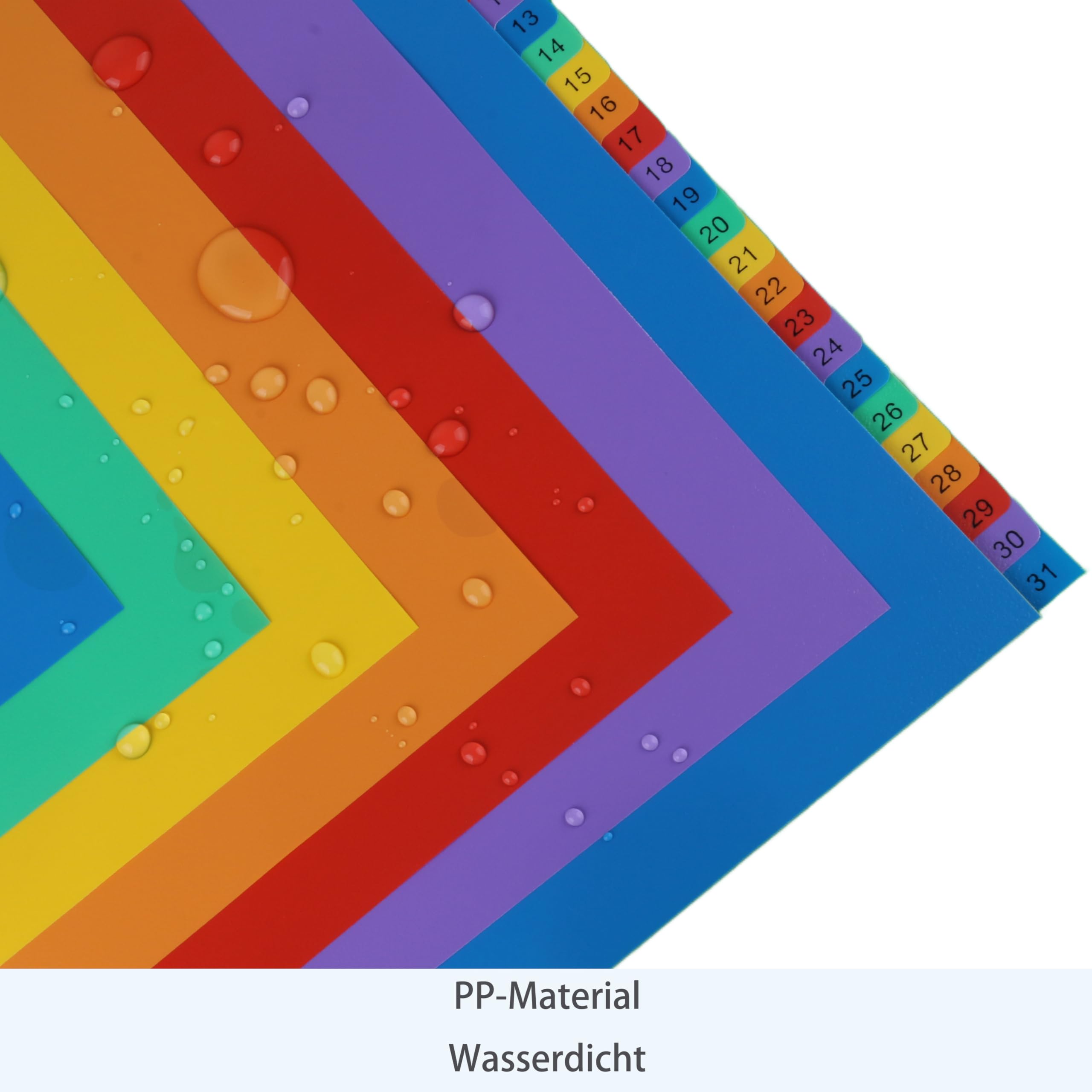 Mensch, mit diesen Register-Trennblättern findest du endlich alles wieder! Komplett-Set mit 12x 5-teiligen Registern in verschiedenen Farben. Aus robustem Kunststoff - reißen nicht so schnell und sind wasserfest. Perfekt für alle Standard-A4-Ordner mit normaler Lochung. Maße: 225x297mm - passen also genau. Mit den farbigen Registern kannst du deine Akten super sortieren - nach Projekten, Monaten oder was auch immer dir einfällt. Oberfläche beschriftbar mit Whiteboard-Markern oder Etiketten. Ob im Büro, Homeoffice oder für die Schule - damit behältst du den Überblick! Einfach in den Ordner stecken und schon ist alles organisiert. Macht die Arbeit gleich viel angenehmer wenn man nicht ewig suchen muss. Und das Beste: Sie halten ewig! Auch bei täglichem Gebrauch sehen sie nach Monaten noch aus wie neu. Einfach mal ausprobieren - du wirst dich fragen wie du ohne ausgekommen bist!