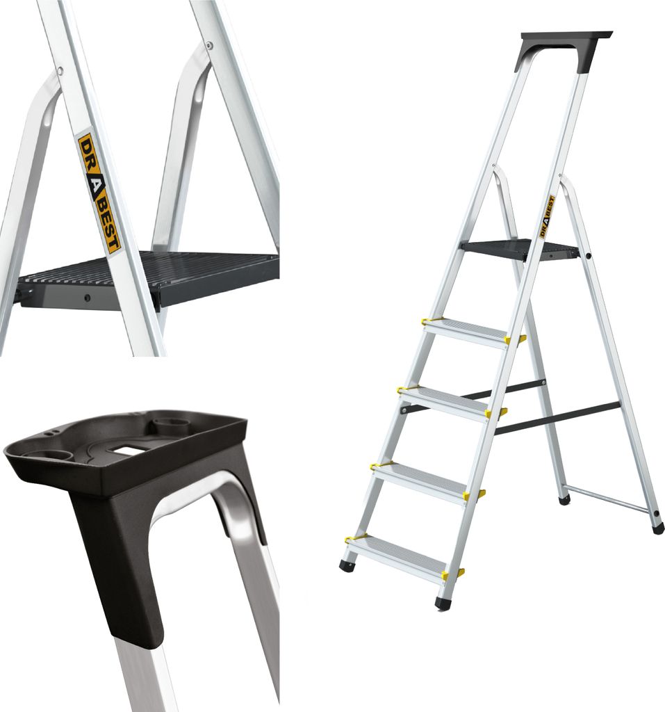 Endlich eine Leiter, die nicht im Weg steht! Diese Aluminium-Trittleiter mit 5 Stufen ist super praktisch für den Haushalt. Einfach aufklappen und schon erreicht man höhere Regale, kann Glühbirnen wechseln oder Fenster putzen. Und nach Gebrauch einfach zusammenklappen - platzsparend verstaut in Sekunden! Die rutschfesten Stufen und Gummifüße geben sicheren Halt, der Haltegriff bietet zusätzliche Sicherheit. Mit 150kg Traglast robust genug für jeden Einsatz. Ob in Küche, Bad, Garage oder Büro - diese Leiter ist dein treuer Helfer für alle Arbeiten in schwindelnder Höhe. Leicht, stabil und einfach zu transportieren - besser als wackelige Hocker! Einfach auspacken und sich über die neue Reichweite freuen!