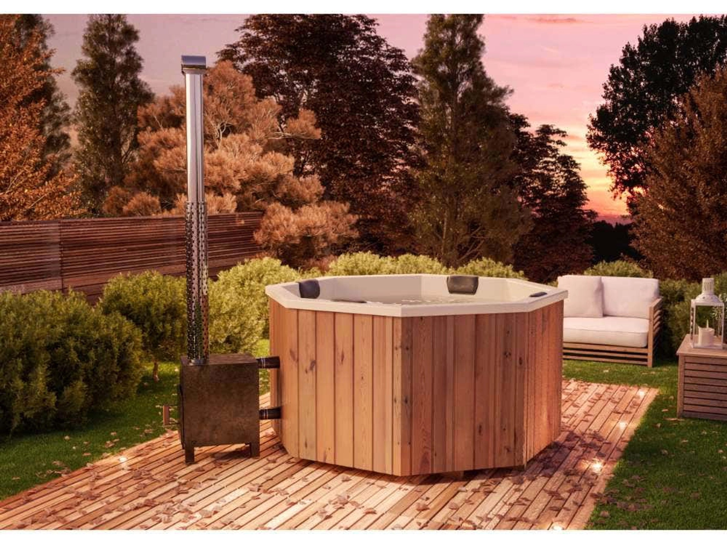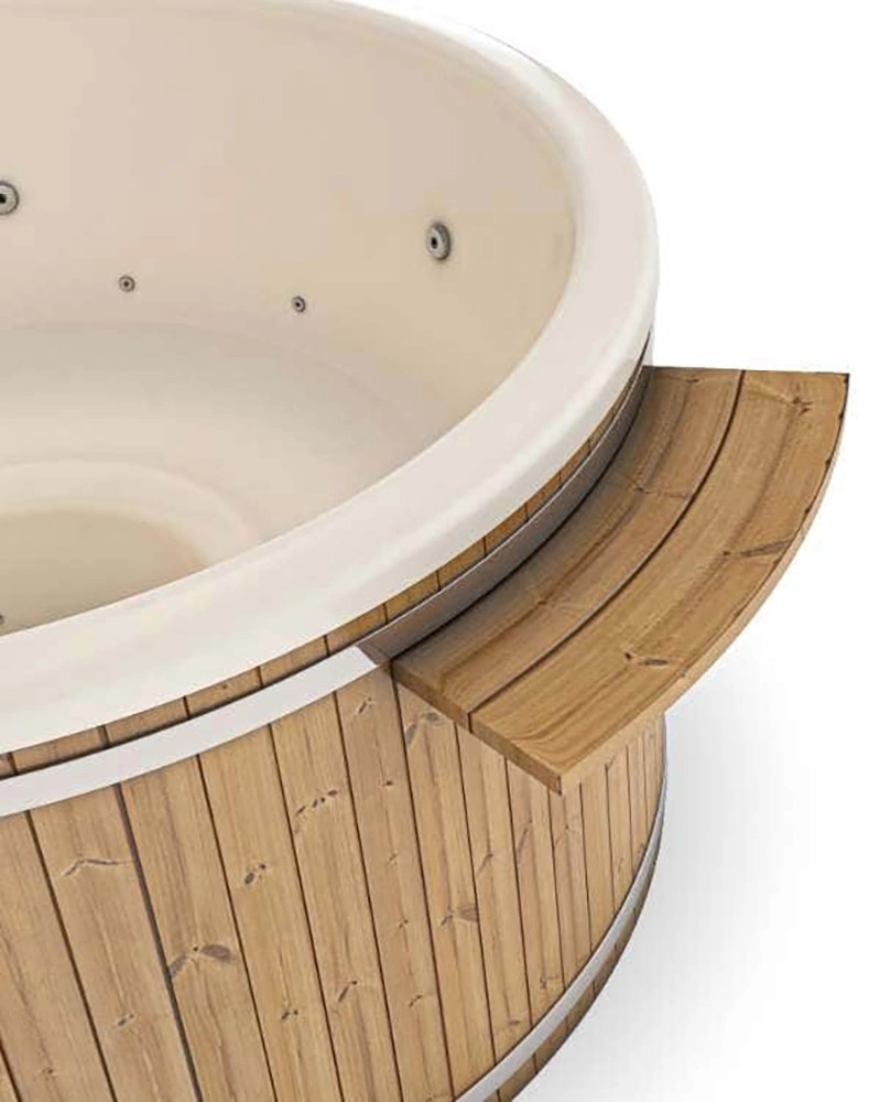 Echte Wellness-Oase im Garten! Das Finntherm Badefass Kopenhagen in 180x180cm bietet Platz für bis zu 6 Personen. Aus witterungsbeständigem Thermoholz mit modernem GFK-Einsatz in Perlweiß oder Anthrazit. Inklusive 27kW Aluminium-Ofen - heizt 1200 Liter Wasser schnell auf. Mit 4 Kopfstützen für maximalen Komfort. Vormontiert geliefert, inklusive Ofenrohr, Tritt und allem Zubehör. Ganzjährig nutzbar - im Winter als Hot Tub, im Sommer als Erfrischung. Einfacher Einstieg, leicht zu reinigen. Dein persönliches Spa-Erlebnis für zuhause! Perfekt für gemütliche Abende mit Freunden oder Familie.