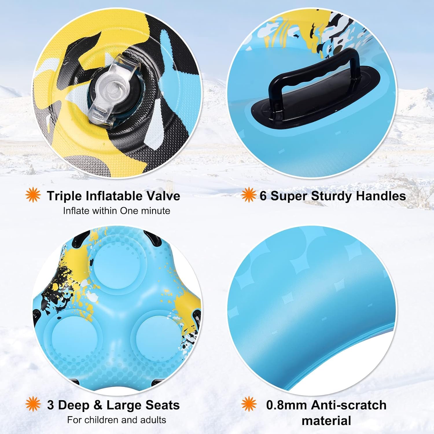 • Aufblasbarer Donut Schlitten 80x80cm - Robuste Snow Tube Für Erwachsene Mit Griffen, PVC