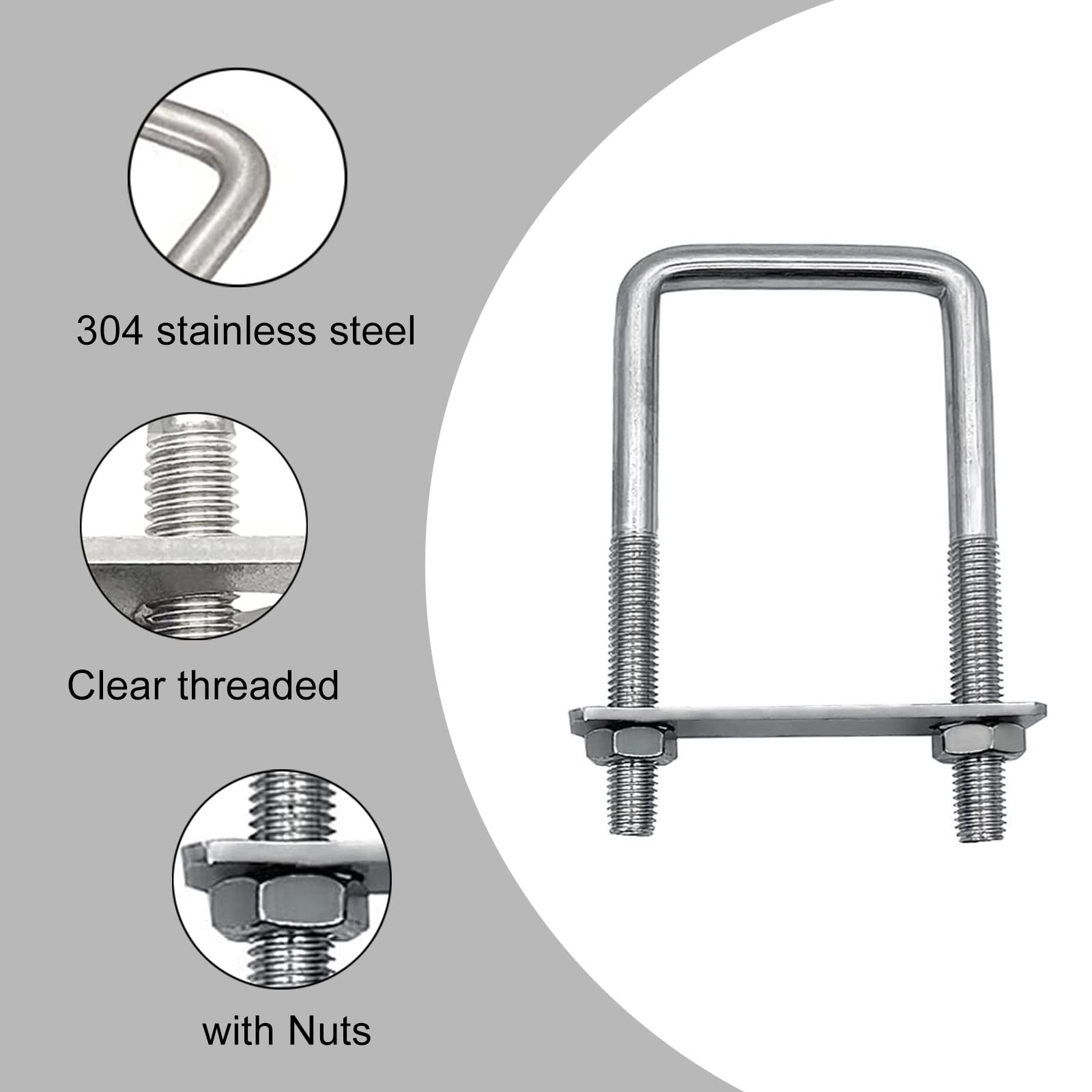 Für alle, die was wirklich Stabiles brauchen! Dieses 4er-Set Bügelschrauben aus Edelstahl 304 ist perfekt für Zaunpfosten, Rohre oder andere Befestigungen. Mit M8 Gewinde und 35mm Gewindelänge halten die bombenfest. Der U-Bolzen hat 40mm innere Breite und 65mm Gesamthöhe - genau richtig für die meisten Anwendungen. Im Set sind alles dabei: 4 U-Bolzen, 4 Rahmenplatten, 8 Muttern und 8 Unterlegscheiben. Die Oberfläche ist poliert und glatt, damit's nicht rostet. Super einfach zu installieren - einfach durchstecken, Unterlegscheibe drauf, Mutter festziehen. Ob im Garten, an Anhängern oder in der Industrie - diese Teile machen einfach alles mit!