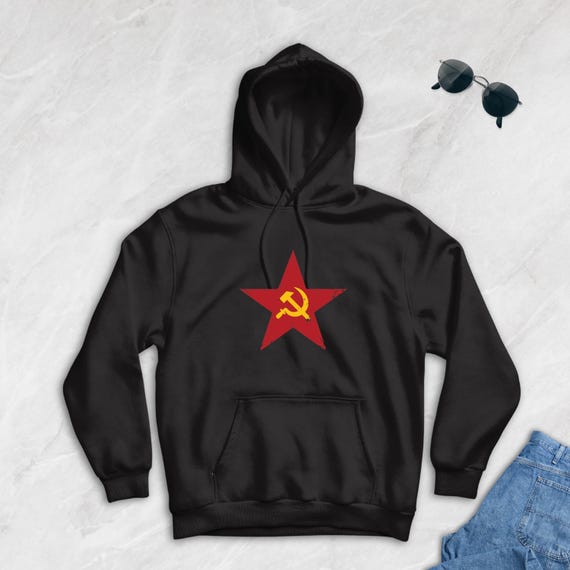 Achtung, Retro-Fans! Dieser UDSSR CCCP Hoodie mit Hammer- und Sichel-Motiv ist ein echter Hingucker. Mit dem vintage-inspired Design und der Abkürzung CCCP (übrigens russisch für Sowjetunion) ziehst du garantiert Blicke auf dich. Perfekt für Halloween-Partys, Cosplay-Events oder einfach als lässiger Alltags-Pullover. Aus 8.5 oz Material und mit doppelt genähtem Saum für extra Langlebigkeit. Der klassische Schnitt sitzt bequem und der Hoodie ist ideal für kühlere Tage. Ob als Geschenk für Geschichts-Fans, Russland-Liebhaber oder für dich selbst - dieses Teil macht einfach Laune! Der distressed Look verleiht dem Design zusätzlichen Retro-Charme. Einfach kombinierbar mit Jeans oder Cargohosen für den ultimativen Vintage-Style. Waschen ohne Probleme - die Qualität stimmt! Für alle, die es etwas anders mögen und mit politischer Ikonografie spielen wollen. Nicht nur ein Kleidungsstück, sondern ein Statement!