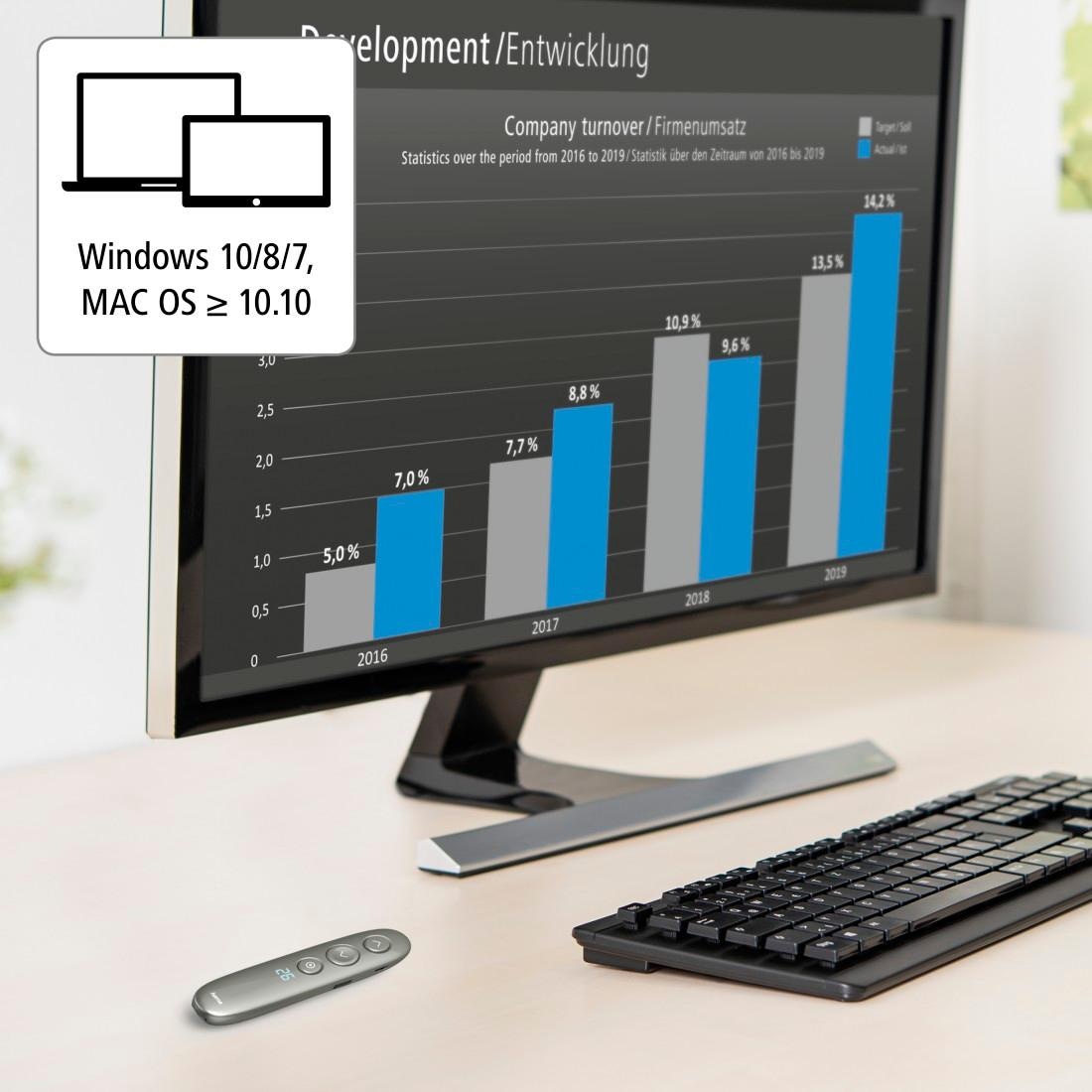 Mega praktisch, dieser Presenter für deine Präsentationen! Mit USB-C Ladung - keine Batterien mehr kaufen. Digitales Display zeigt immer den Akkustand an. Einfach Plug & Play - USB-C Empfänger steckt direkt im Presenter. 25 Meter Reichweite - du kannst dich frei im Raum bewegen. Ergonomisches Design liegt perfekt in der Hand. Kompatibel mit PowerPoint, Google Slides, Keynote und mehr. Rote Leuchte zum Zeigen auf Folien. Schwarzbild- und Vollbildmodus inklusive. Perfekt für Meetings, Vorträge oder Unterricht. Macht jede Präsentation professioneller!
