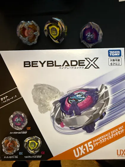Beyblade-Fans aufgepasst! Dieses UX-15 Set mit Shark Scale Design bringt richtig Action ins Spiel. Enthält 3 komplette Beyblades (BX, UX und CX) mit speziellen Klingen für extreme Angriffe. Das Shark Sail 4-50UF ist besonders für Angriffe von unten positioniert. Inklusive Ratsche, Bits, Bedienungsanleitung und Beycode-Karte. Aber Achtung: Du brauchst noch eine Beyblade X Arena und einen Launcher (separat erhältlich). Perfekt für schnelle, actionreiche Kämpfe mit super Beschleunigung! Lass die Kreisel kreisen und hab Spaß mit den coolen Designs.