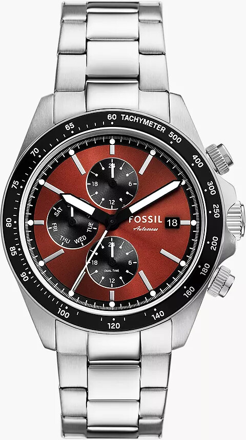 Diese Fossil Autocross Uhr ist ein echter Hingucker! Mit ihrem 42mm Edelstahlgehäuse und dem markanten grünen Zifferblatt zieht sie garantiert Blicke auf sich. Das präzise Quarzwerk mit Multifunktions-Analoganzeige sorgt für perfekte Zeitmessung. Das kratzfeste Mineralglas schützt das Zifferblatt zuverlässig. Das silberne Edelstahlarmband (22mm Breite) lässt sich durch entfernen von Gliedern individuell anpassen. Mit 50m Wasserdichtigkeit (5 ATM) kannst du sie auch beim Schwimmen oder Duschen tragen - perfekt für den Alltag und besondere Anlässe. Ein zeitloses Design, das zu jedem Outfit passt!