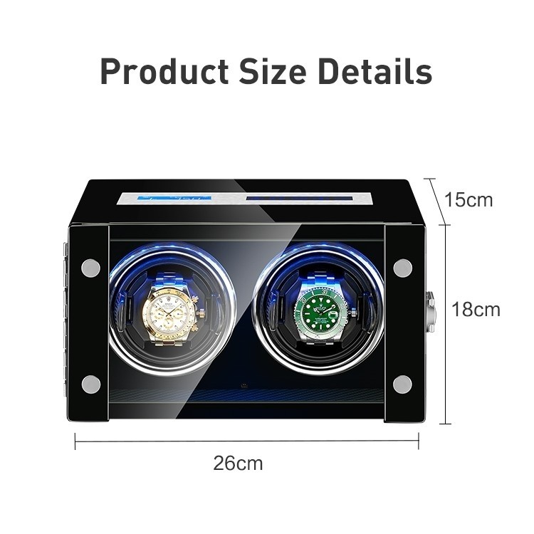 Halte deine mechanischen Uhren immer bereit! Dieser Cryfokt Uhrenbeweger für 2 Uhren zieht automatisch auf - perfekt für automatische und manuelle mechanische Uhren aller Marken. Super leiser Motor, kein störendes Geräusch auch nachts. Mit elegantem LED-Licht für tolle Präsentation. Aus hochwertigem ABS-Material, batteriebetrieben oder per USB-Kabel. Einfache Bedienung - Uhr reinlegen, Taste drücken, fertig! Schützt vor Stillstand und verlängert die Lebensdauer. Perfektes Geschenk für Uhren-Liebhaber!