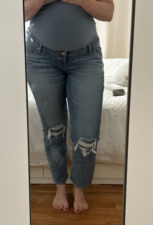 Stylish durch die Schwangerschaft! Diese bequemen Umstandsjeans im Skinny-Fit begleiten Sie durch alle Phasen Ihrer Schwangerschaft. Mit normalem Bund und modischer Destroyed-Optik fühlen Sie sich auch mit Babybauch trendy und wohl. Die Denim-Qualität ist dehnbar und passt sich Ihrer wachsenden Figur perfekt an. Ob im Büro, unterwegs oder in der Freizeit - diese Hose ist ein echter Allrounder, der zu verschiedenen Anlässen passt. Das Leggings-Feeling kombiniert mit Jeans-Look - was will man mehr? Einfach anziehen und sich rundum wohlfühlen. Perfekt für alle modernen Mamas, die auch in der Schwangerschaft nicht auf Style verzichten möchten. Mit dieser Jeans machen Sie in jeder Phase eine gute Figur und genießen maximalen Komfort. Weil Sie es sich verdient haben, sich auch mit Babybauch toll zu fühlen!