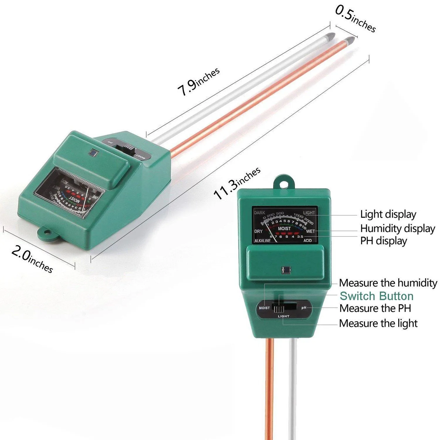 Garten-Freunde, dieser Akozon Boden-Tester ist dein bester Helfer für gesunde Pflanzen! Misst sowohl PH-Wert als auch Feuchtigkeit - zwei in einem! PH-Bereich von 3-8 mit 0,3 Genauigkeit - super präzise! Feuchtigkeitsskala von 1-8 - siehst du sofort, ob gegossen werden muss! Keine Batterien nötig - einfach in die Erde stecken und ablesen! Wasserdichte Metallelektrode - robust und langlebig! Perfekt für Weinberge, Obstplantagen, Rasen oder deinen Garten! Schnelle Messung - innerhalb von Sekunden hast du Ergebnisse! Hilft dir, den perfekten Boden für deine Pflanzen zu schaffen! Einfache Bedienung - auch für Garten-Anfänger geeignet! Größe: 160x50mm - handlich und gut zu greifen! Super für Hobbygärtner und professionelle Pflanzenpfleger! Verhindert Über- oder Unterwässerung deiner Pflanzen! Zeigt dir, ob dein Boden zu sauer oder zu basisch ist! Einfach in die Erde stecken, ablesen und deine Pflanzen optimal pflegen! Dein Garten wird es dir danken mit üppigem Wachstum!