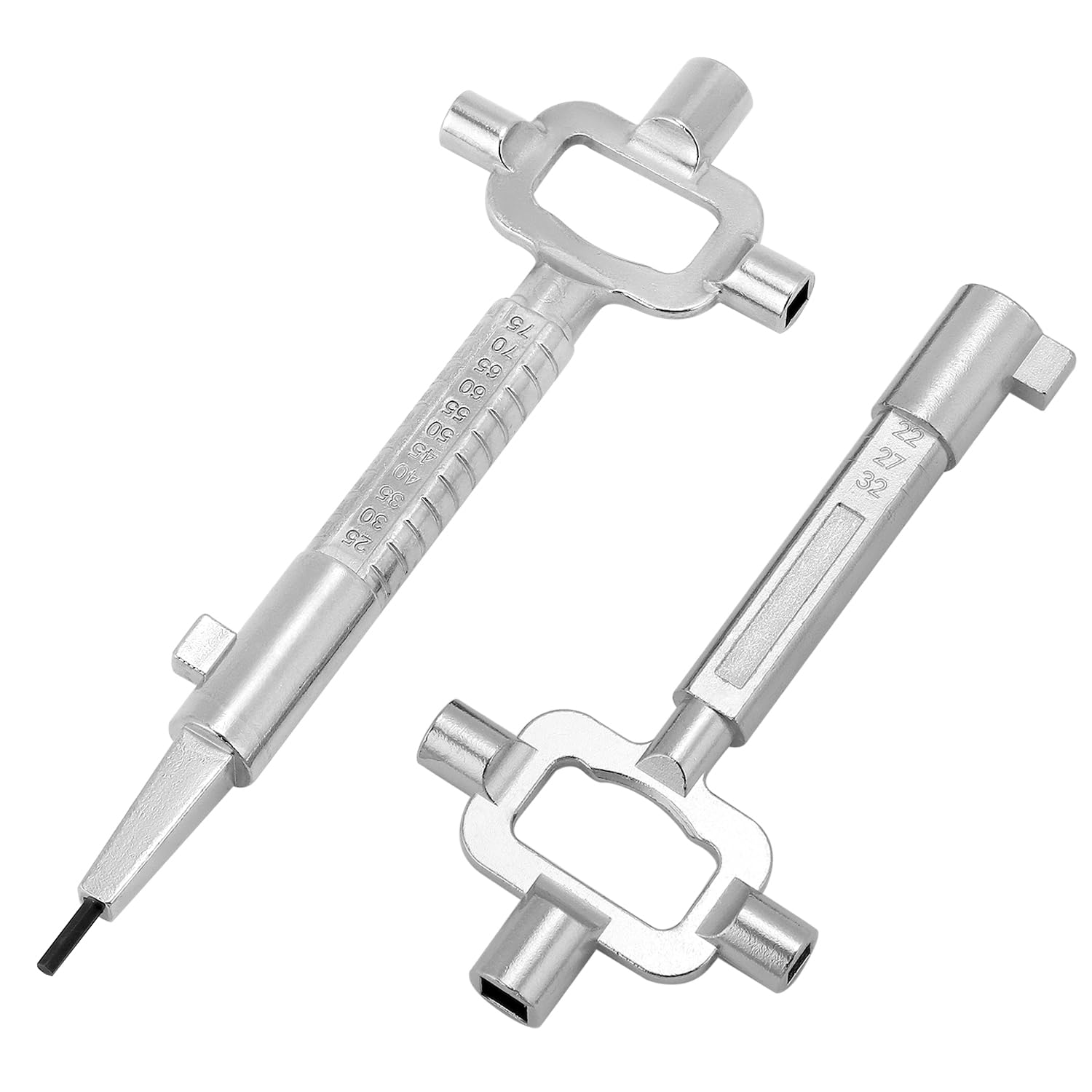 Hey, für alle Handwerker und Hausmeister: Diese Universal-Bauschlüssel sind echt praktisch! Im Set sind 2 Stück - einmal lang, einmal kurz. Aus Zinklegierung mit vernickelter Oberfläche - rostfrei und langlebig. Mit integrierter Skala von 22-75mm, perfekt zum Messen von Zylinderlängen. Drei quadratische Schlüssel (6,7,8mm) und ein 3mm Sechskant sind dabei. Ideal zum Öffnen von Einsteckzylindern, für Schaltschränke oder Lüftungsgitter. Das spitze Ende mit der flachen Nocke ist super für Notöffnungen. Ein echter Allrounder für die Werkzeugtasche! Ob beruflich oder privat - mit diesen Schlüsseln bist du für viele Situationen gewappnet. Einfach mal ausprobieren, du wirst überrascht sein, wie oft du sie brauchst!