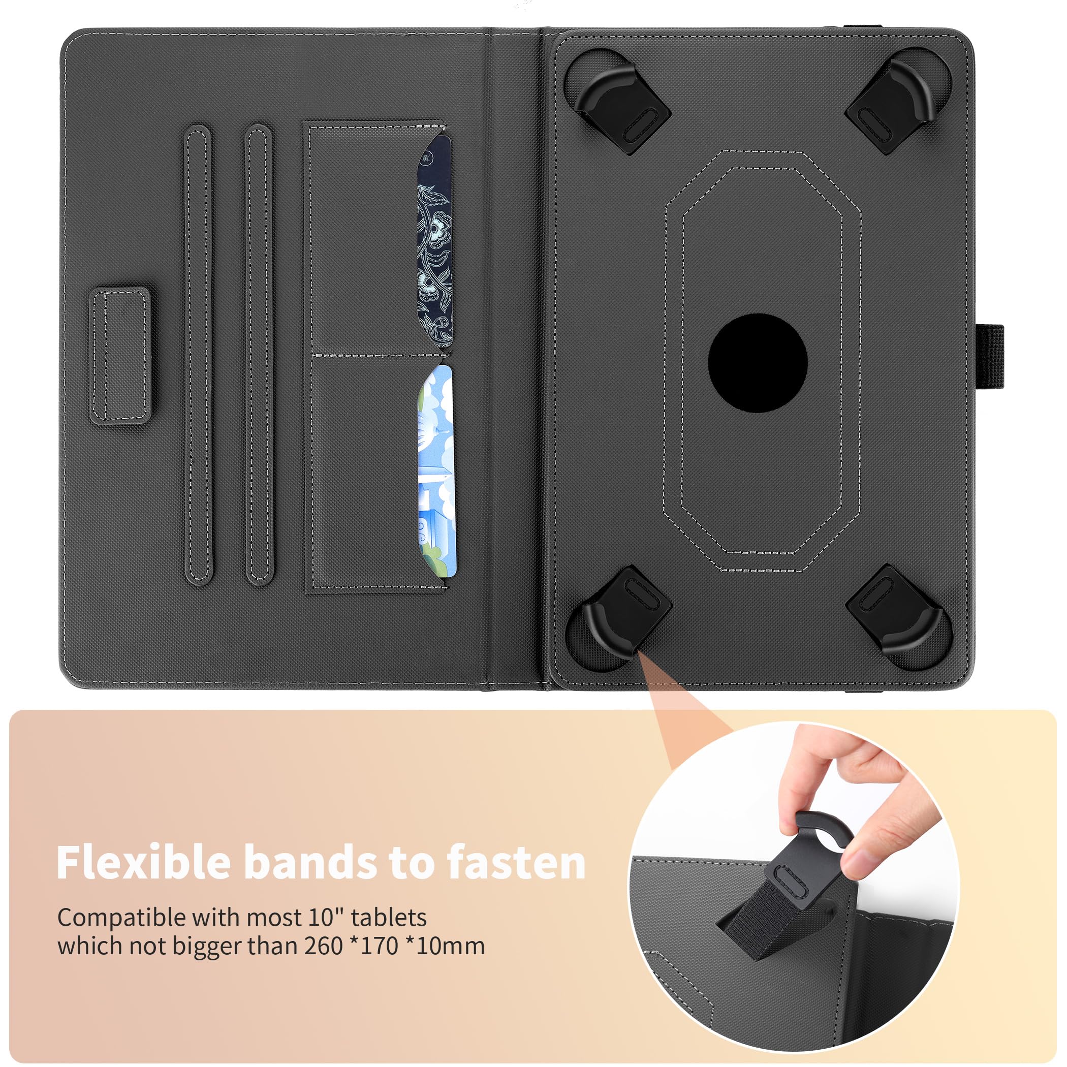 Passend für fast jedes 10-11 Zoll Tablet! Diese Universal-Hülle ist super praktisch - solange dein Tablet zwischen 22,5-26cm lang und 14-17,5cm breit ist, passt es. Kompatibel mit HotLight, DOOGEE U11, OSCAL, SGIN und vielen anderen Marken. Aber Achtung: Es gibt kein Kamera-Loch! Das PU-Leder sieht edel aus und schützt dein Tablet vor Kratzern und Stößen. Der Clou: Du kannst den Ständer in verschiedenen Winkeln aufstellen - perfekt zum Videos schauen oder tippen. Innen ist die Hülle rutschfest, außen hält ein elastischer Verschluss alles sicher zusammen. Es gibt sogar eine Vordertasche für Karten, eine Handschlaufe für sicheren Griff und einen Stiftring. So ist dein Tablet immer sicher und griffbereit. Ob zu Hause, unterwegs oder im Büro - diese Hülle ist der perfekte Begleiter für dein Tablet!