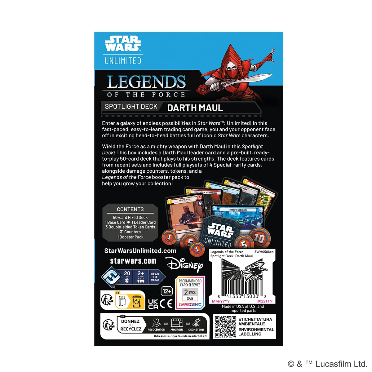 Tauche ein in die Welt von Star Wars! Dieses Darth Maul Spotlight Deck bringt actionreichen Sammelkartenspiel-Spaß für 2+ Spieler ab 12 Jahren. Enthält ein komplettes 50-Karten-Deck mit dem ikonischen Sith-Lord Darth Maul als Anführer. Plus 4 exklusive Spezial-Karten, die es nur in diesem Set gibt! Inklusive einem Legends of the Force Booster zum Erweitern deiner Sammlung. Schnell zu erlernen, mit spannenden Duellen in ca. 20 Minuten. Perfekt für Fans, Sammler und alle, die die Macht nutzen wollen. Die Galaxie wartet auf dich!