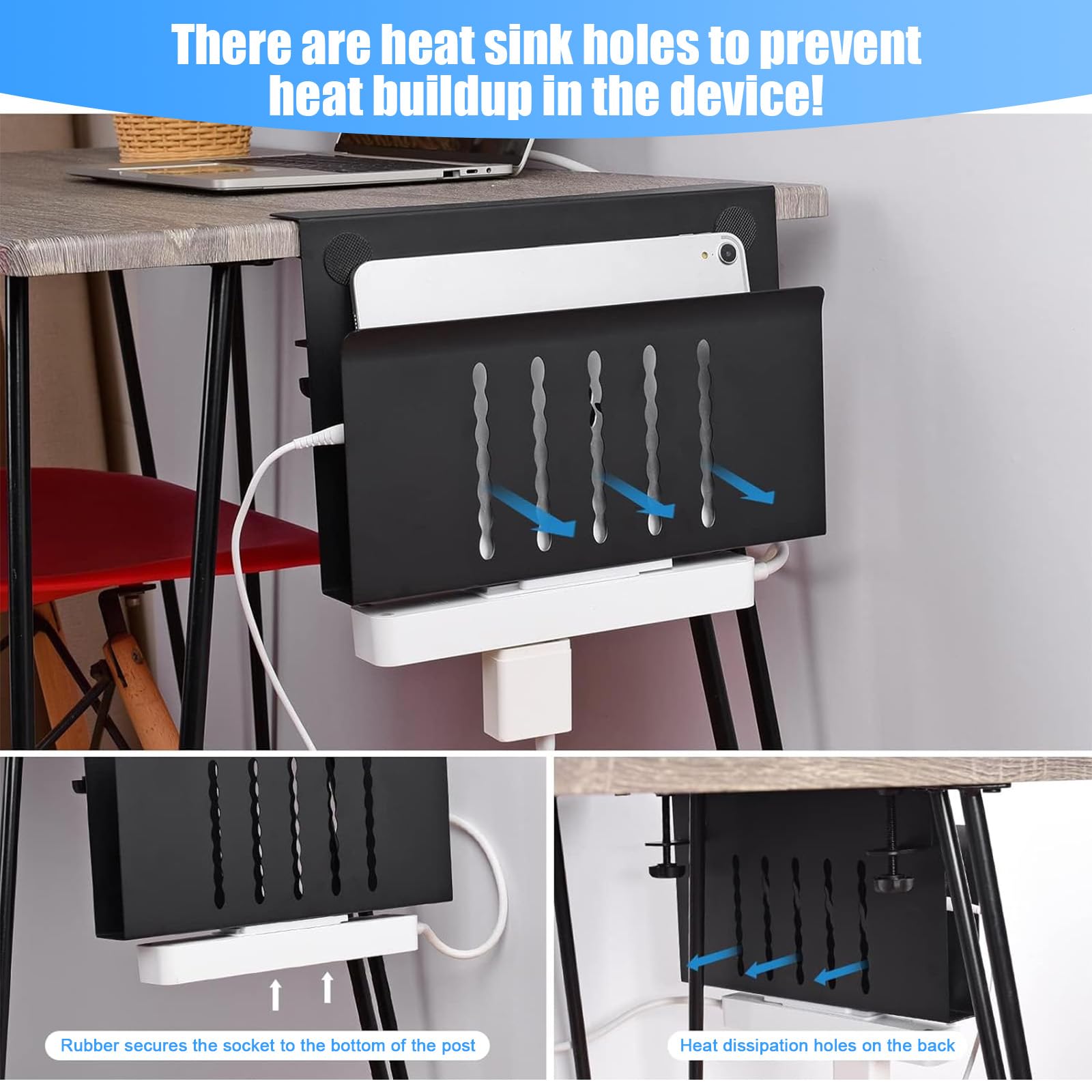 Platzprobleme auf dem Schreibtisch? Dieser PEGZONE Untertisch-Organizer schafft Abhilfe! Einfach an der Tischkante befestigen - komplett bohrfrei! Hält bis zu 22 Pfund und passt an Tischkanten von 1-5,6cm Stärke. Dein Laptop, Tablet oder Ordner haben jetzt ihren festen Platz und deine Arbeitsfläche bleibt sauber und aufgeräumt. Die Silikonpads schützen deine Geräte vor Kratzern, und die Belüftungslöcher verhindern Überhitzung. In schickem Schwarz passt der Organizer zu jedem Einrichtungsstil. Endlich mehr Platz und Ordnung auf dem Schreibtisch - einfach genial!