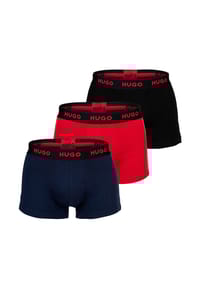 Bequeme Unterwäsche von HUGO! Dieses 3er Pack Trunks sitzt super bequem mit niedrigem Bund und kurzem Bein. Das wiederholende HUGO Logo am Bund sieht stylisch aus. Aus weichem, atmungsaktivem Material - perfekt für den Alltag. Sitzt wie angegossen, verrutscht nicht. Für jeden Tag geeignet, ob unter Jeans oder Anzughose. Einfach anziehen und wohlfühlen! Wenn du mal qualitative Unterwäsche suchst, die nicht nur gut aussieht sondern auch bequem ist - hier wirst du fündig. Einfach bestellen und tragen!