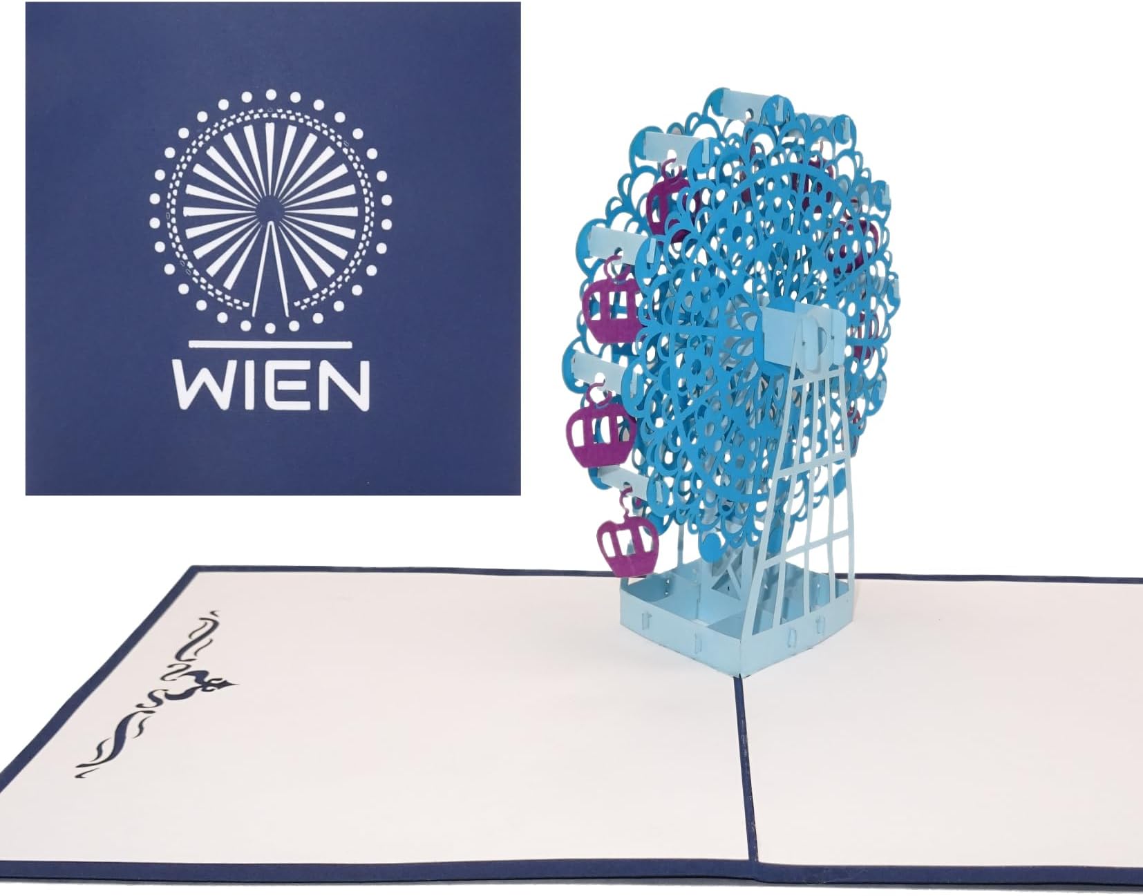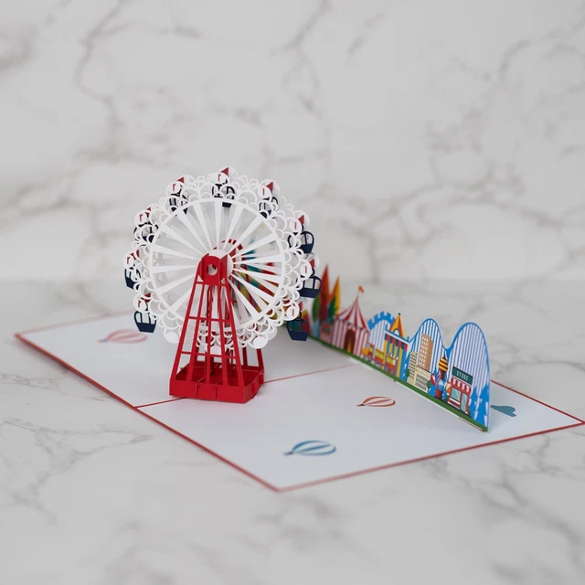 Wow, was für eine Karte! Beim Öffnen entfaltet sich ein filigranes Riesenrad in 3D - einfach magisch! Perfekt als Einladung zur Geburtstagsfeier, als Gutscheinkarte oder einfach als besondere Überraschung. Im roten Cover mit \Gutschein\ Aufdruck innen.