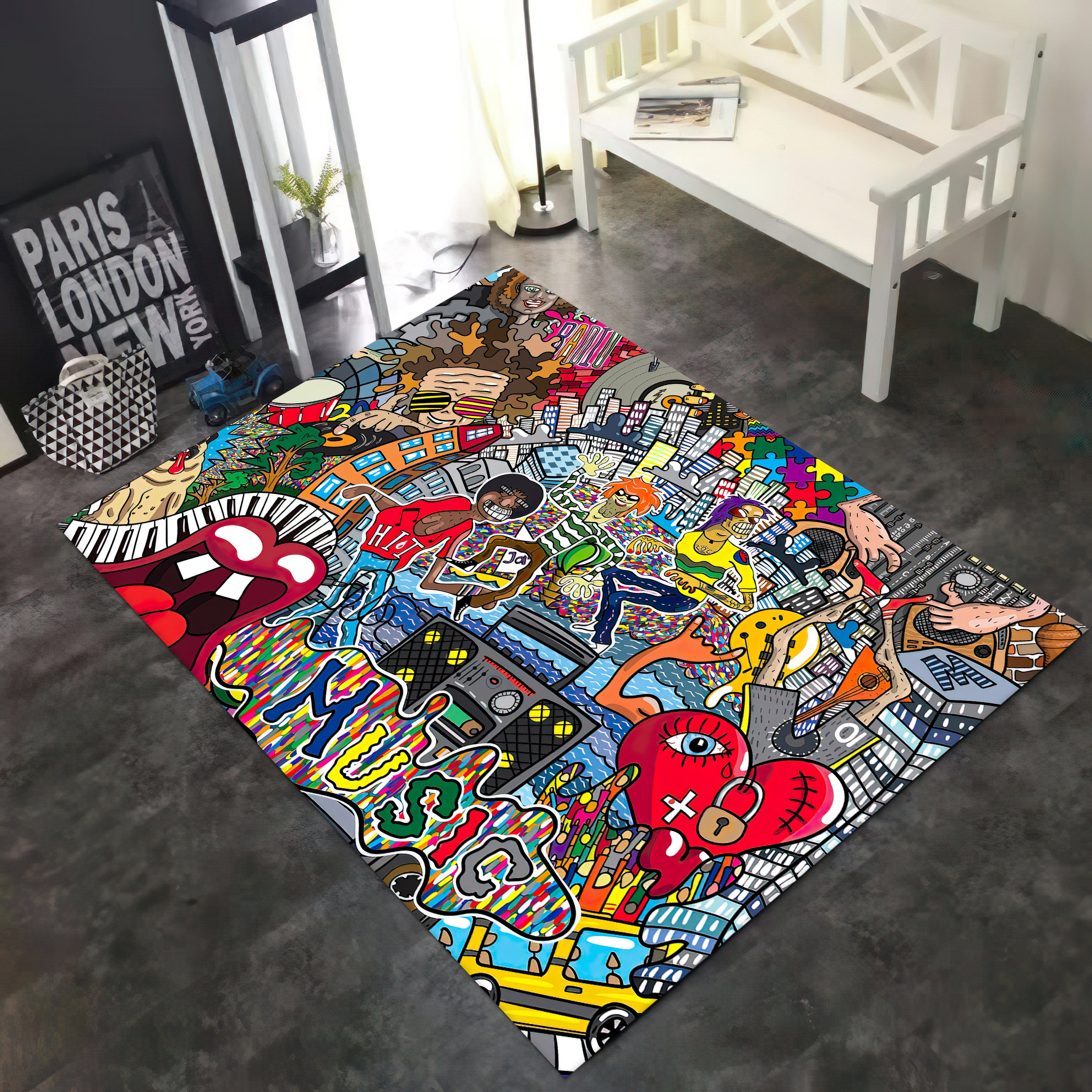 • Graffiti Style Rundteppich 60cm - Urban Street Art Matte Für Jugendzimmer