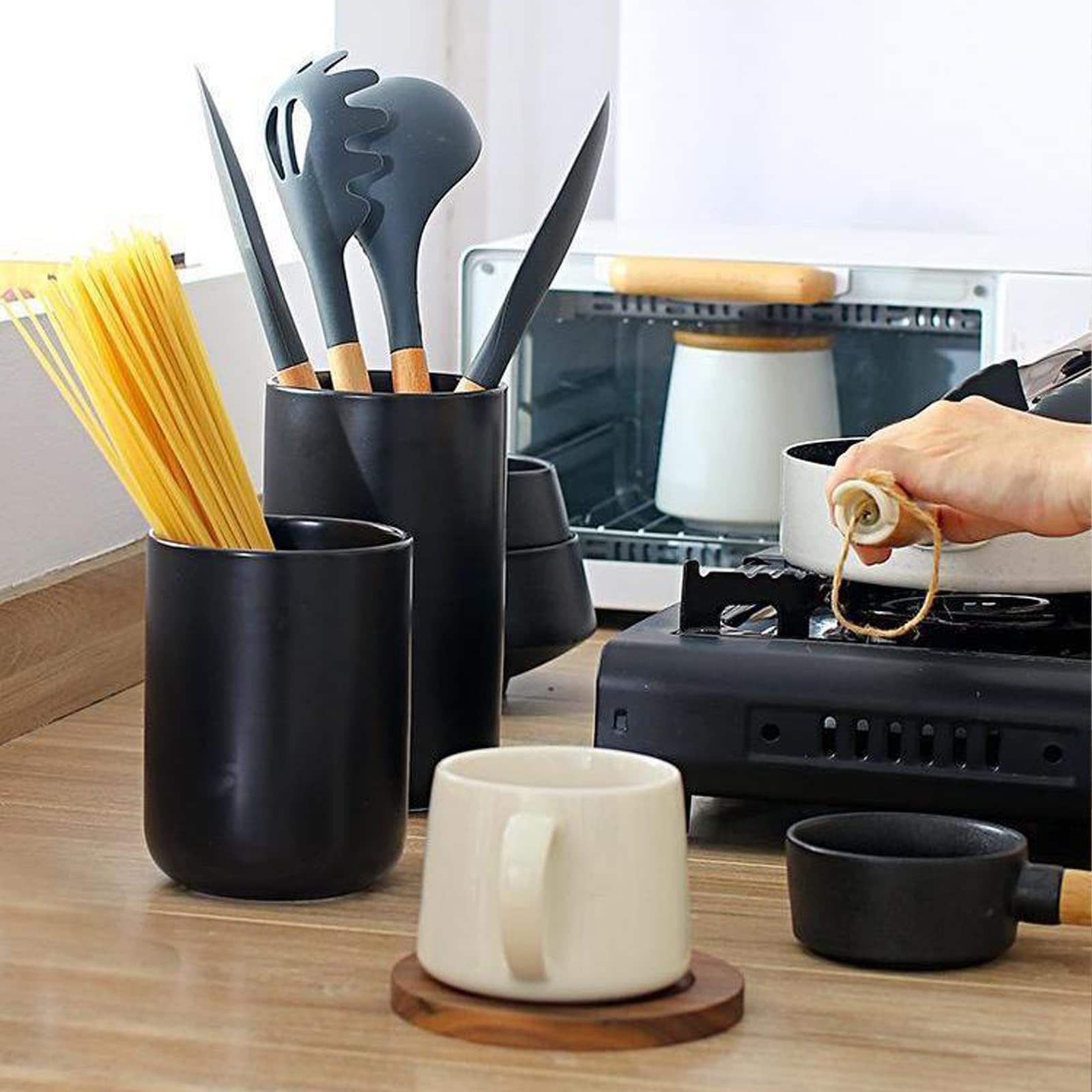 Ordnung und Stil für deine Küche! Dieser Keramik-Utensilienhalter von RISHORI ist nicht nur super praktisch, sondern sieht auch noch toll aus. Mit den eleganten vertikalen Streifen im nordischen Design wird er zum echten Hingucker auf deiner Arbeitsplatte. Maße: 13,5x8,8 cm - groß genug für Kochlöffel, Pfannenwender, Schneebesen und andere Küchenhelfer. Der abnehmbare Sockel macht die Reinigung super einfach. Aus hochwertiger Keramik gefertigt, ist er spülmaschinenfest, mikrowellengeeignet und sogar ofenfest! Die fünf Löcher am Boden sorgen dafür, dass eventuelles Wasser ablaufen kann. In Khaki (auch in Weiß, Grün und Grau erhältlich) passt er zu jedem Küchendesign. Ob als Utensilienhalter, Vase oder Aufbewahrung für Kochbesteck - dieses Teil ist ein echter Allrounder. Ein perfektes Geschenk für alle, die ihre Küche lieben!