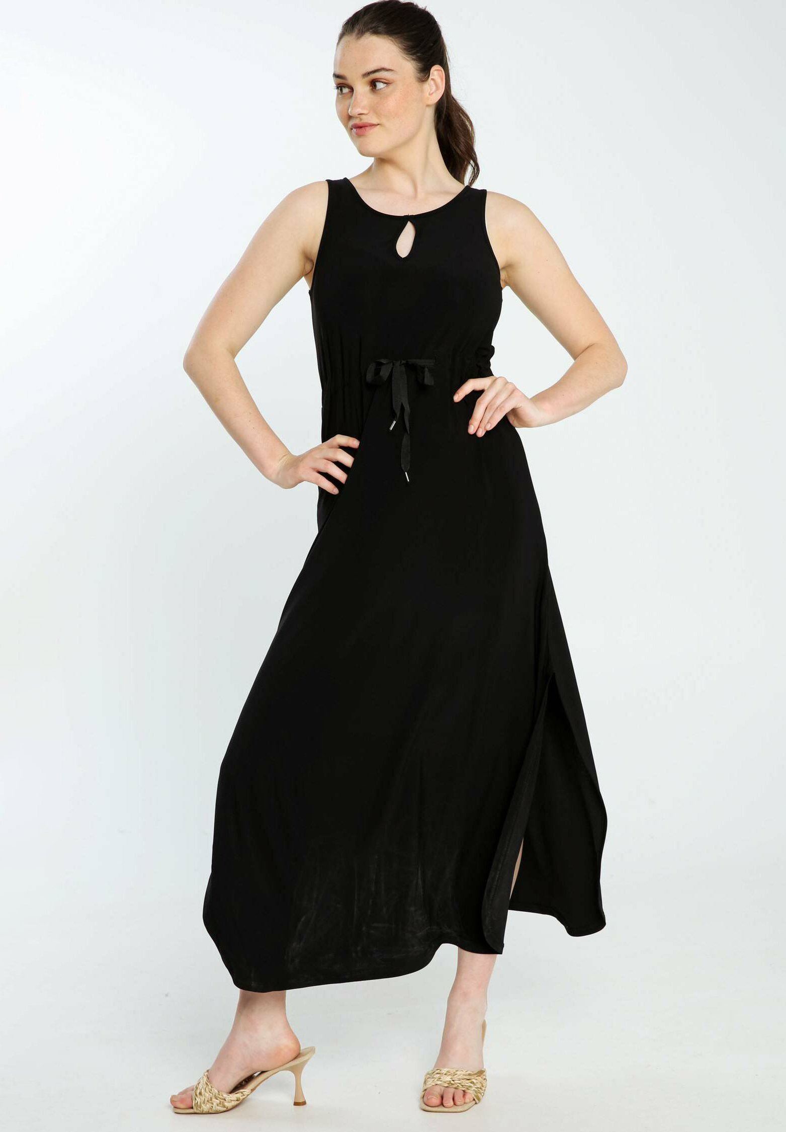 Edelaura Damen Maxikleid Mit V-Ausschnitt - 3/4 Arm Hochtailliert Mit Kordelzug