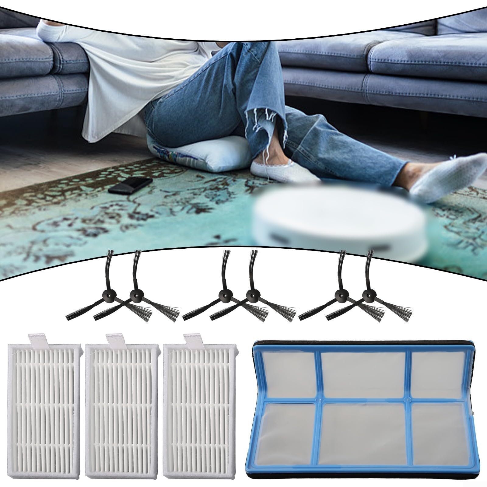 Dein Zaco Staubsauger braucht neues Zubehör? Dieses 10-teilige Ersatzteil-Set ist genau das Richtige! Enthält 6 Seitenbürsten, 3 Filter und 1 Primärfilter - alles was du für die Wartung brauchst. Passt perfekt für Zaco V3, V3s, V5, V5s und V5s Pro Modelle. Super einfach zu installieren - kein Techniker nötig! Die Teile sind langlebig und zuverlässig verarbeitet. So bleibt dein Staubsauger lange effektiv und saugstark. Perfekt um verbrauchte Bürsten und Filter auszutauschen. Macht deinen Staubsauger wieder fit für den täglichen Einsatz! Einfach bestellen und die alten Teile ersetzen - schon saugt dein Zaco wieder wie am ersten Tag! Praktisches Komplett-Set das wirklich alles enthält was man braucht!