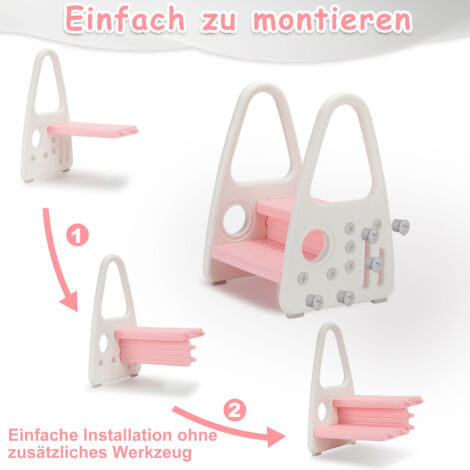 Mama, Papa - dieser Tritthocker ist ein Game-Changer für eure Kleinen! Mit zwei Stufen können auch die Kleinsten überall mithelfen. Aus ungiftigem PP-Kunststoff - super stabil und hält bis zu 50 kg (ja, Mama darf auch drauf!). Die beiden Armlehnen geben deinem Kind sicheren Halt beim Hoch- und Runtersteigen. Die verbreiterten Pedale haben Anti-Rutsch-Rillen und die Füße haben rutschfeste Silikon-Pads - also alles sicher! Mit 61cm Höhe, 45cm Breite und 39,5cm Tiefe genau die richtige Größe für Kinder von 1-8 Jahren. Perfekt für die Küche (um beim Kochen zu helfen), im Badezimmer (zum Händewaschen) oder im Kinderzimmer (um an Bücherregale zu kommen). Einfach zusammenbauen und dein Kind hat seinen eigenen 'Arbeitsplatz'. Fördert die Selbstständigkeit und macht einfach Spaß!